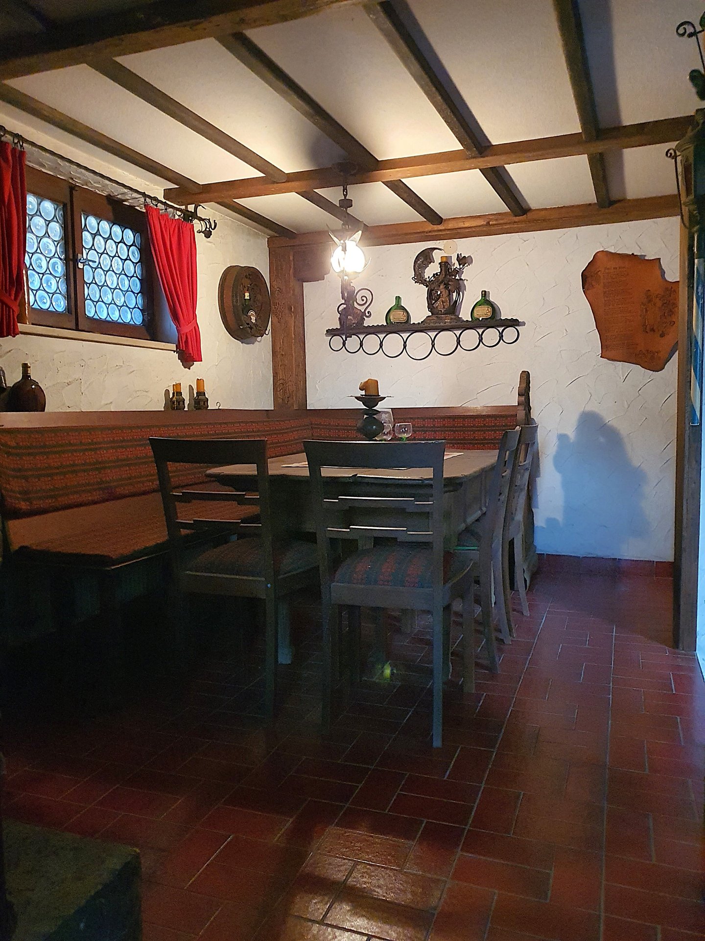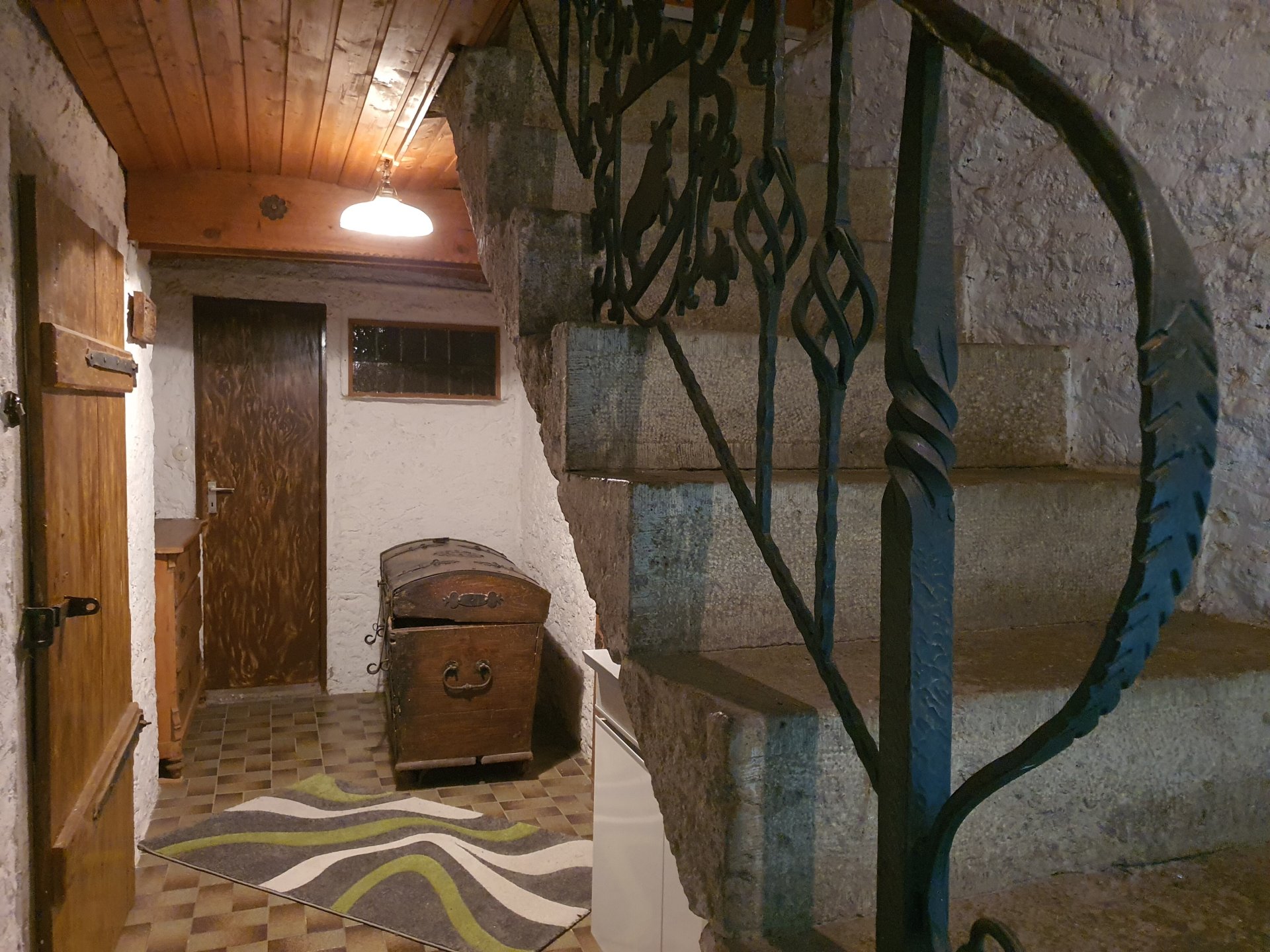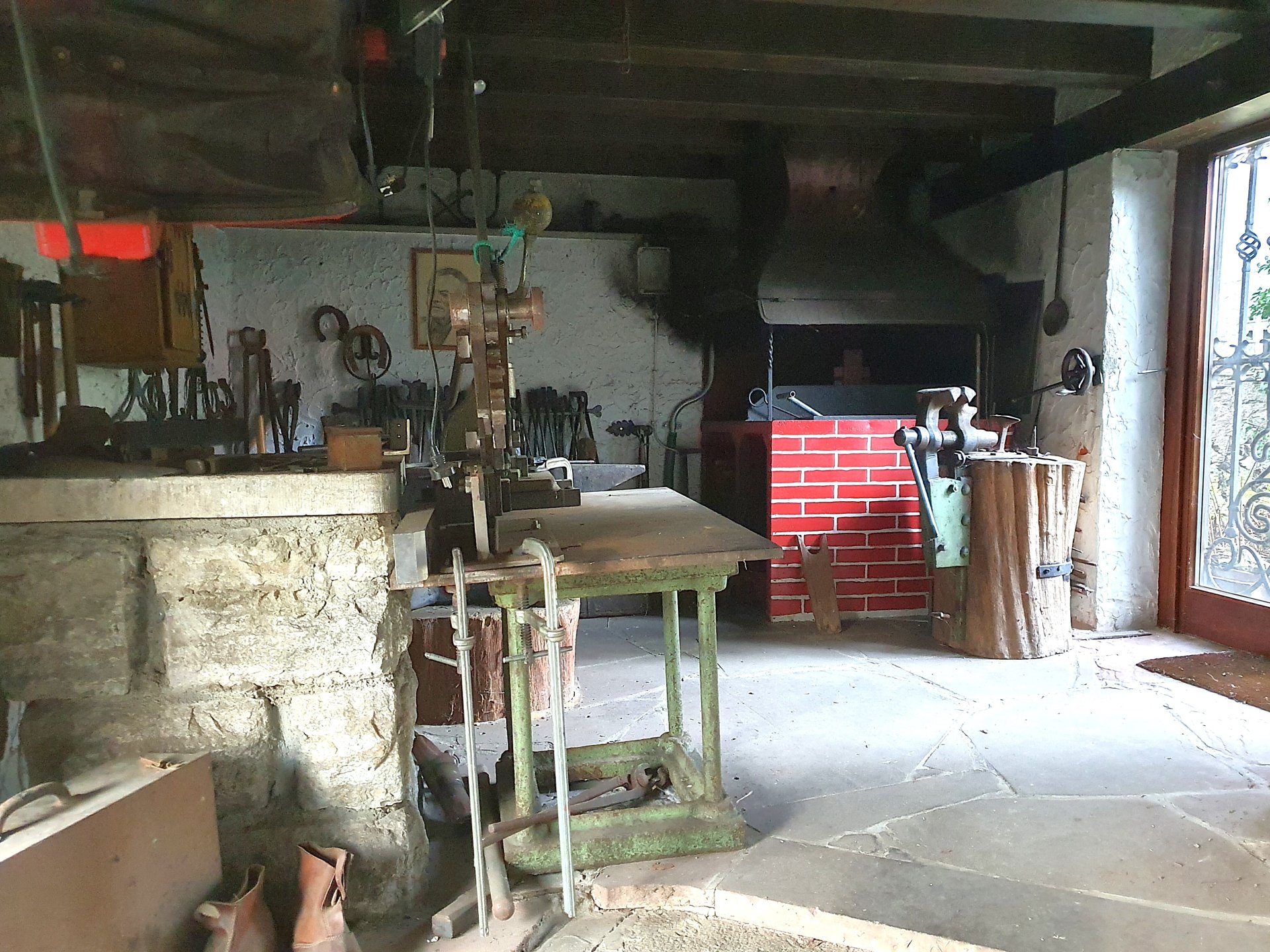 Im Untergeschoss findet sich neben klassischen Kellerräumen ein beheizter Bereich, ideal für gemütliche Abende, kleine Feiern oder entspannte Stunden im privaten Kreis. Direkt daran angrenzend befindet sich die Schmiede, die Ende der 1980er Jahre im Zuge einer Wohnraumerweiterung wieder integriert wurde. Sie bietet heute vielseitige Nutzungsmöglichkeiten: als atmosphärische Erweiterung des Aufenthaltsbereichs, als Außenküche, Kaminstelle oder kreativer Ort mit historischem Flair.
