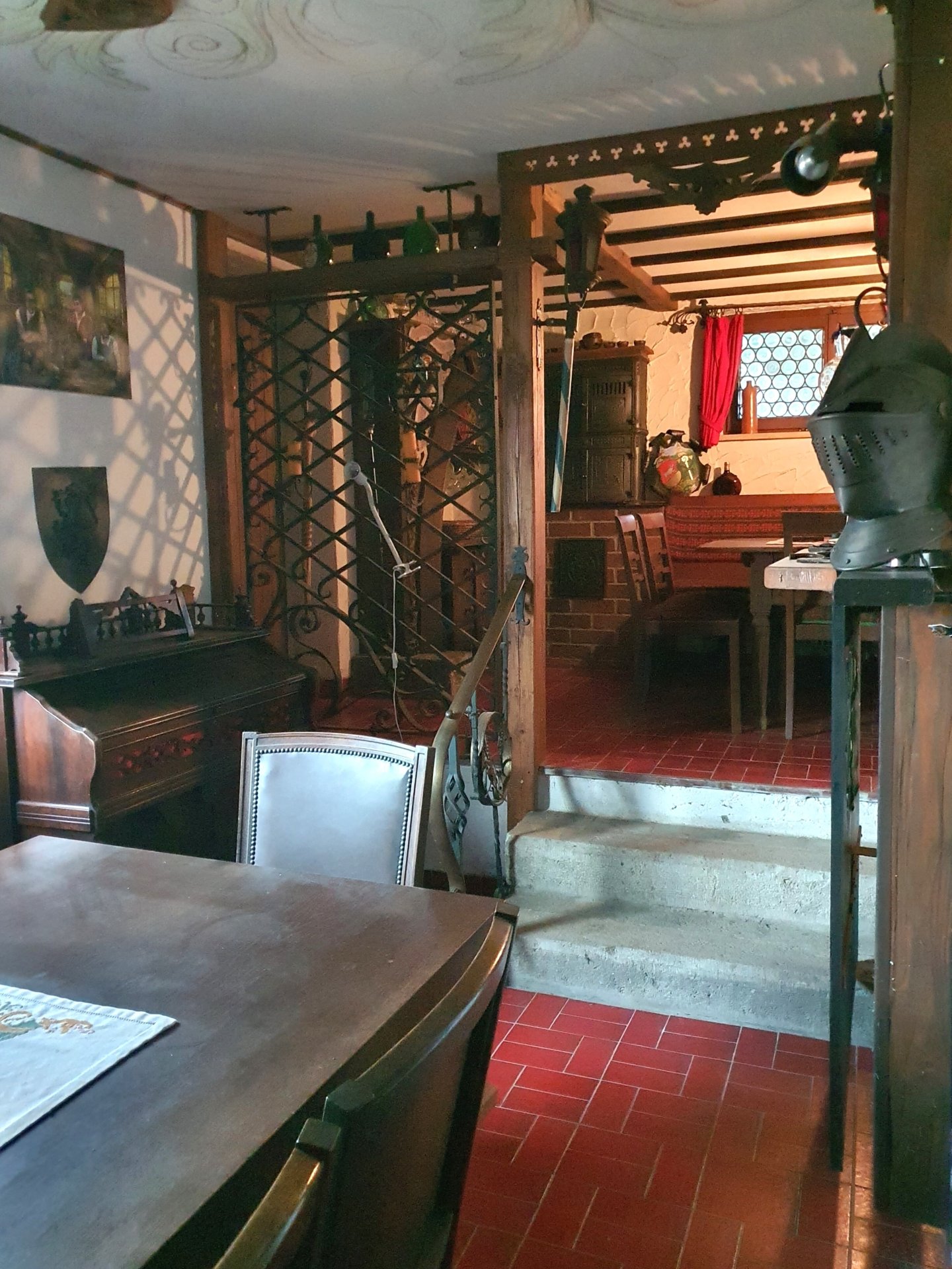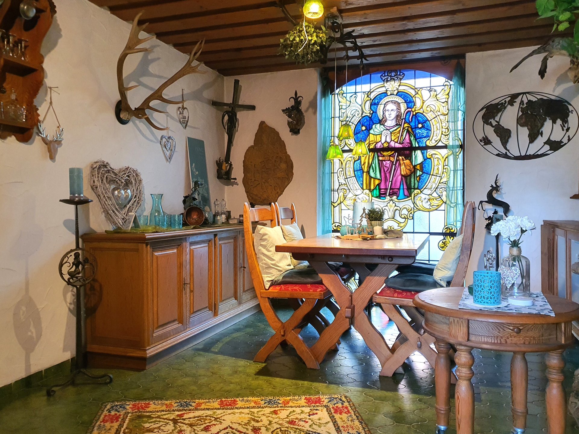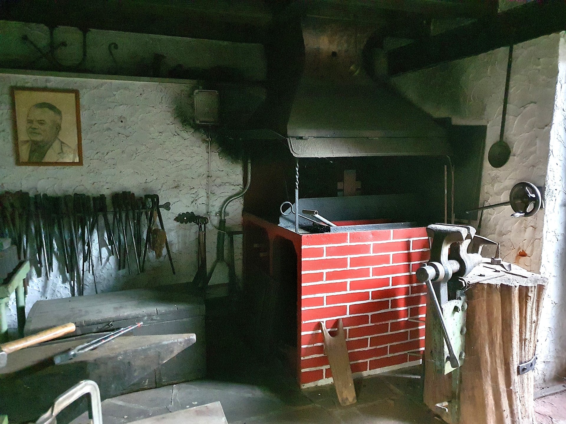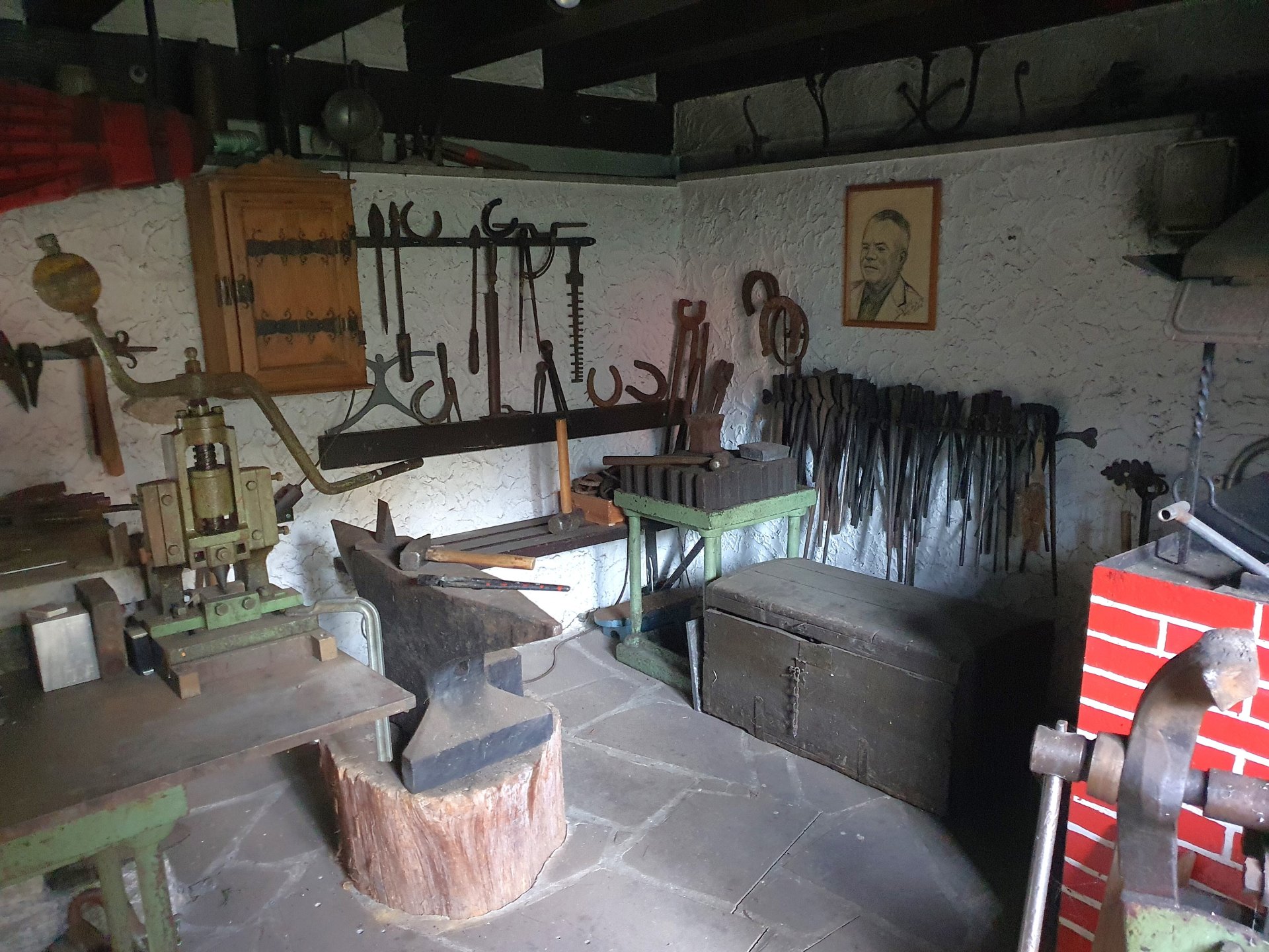 Im Untergeschoss findet sich neben klassischen Kellerräumen ein beheizter Bereich, ideal für gemütliche Abende, kleine Feiern oder entspannte Stunden im privaten Kreis. Direkt daran angrenzend befindet sich die Schmiede, die Ende der 1980er Jahre im Zuge einer Wohnraumerweiterung wieder integriert wurde. Sie bietet heute vielseitige Nutzungsmöglichkeiten: als atmosphärische Erweiterung des Aufenthaltsbereichs, als Außenküche, Kaminstelle oder kreativer Ort mit historischem Flair.