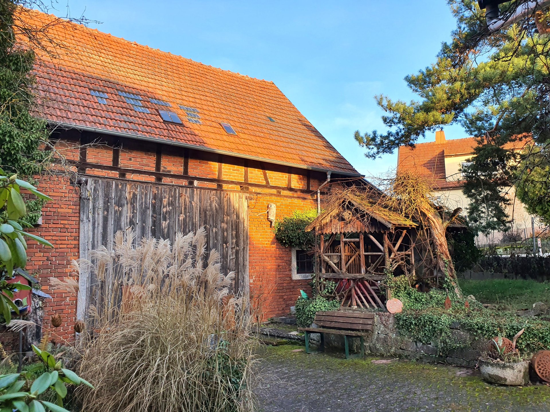 Die alte Scheune ergänzt das Ensemble mit ihrem charmanten Charakter und bietet zusätzlichen Raum für Atelier, Werkstatt, Projekte oder Hobby.
