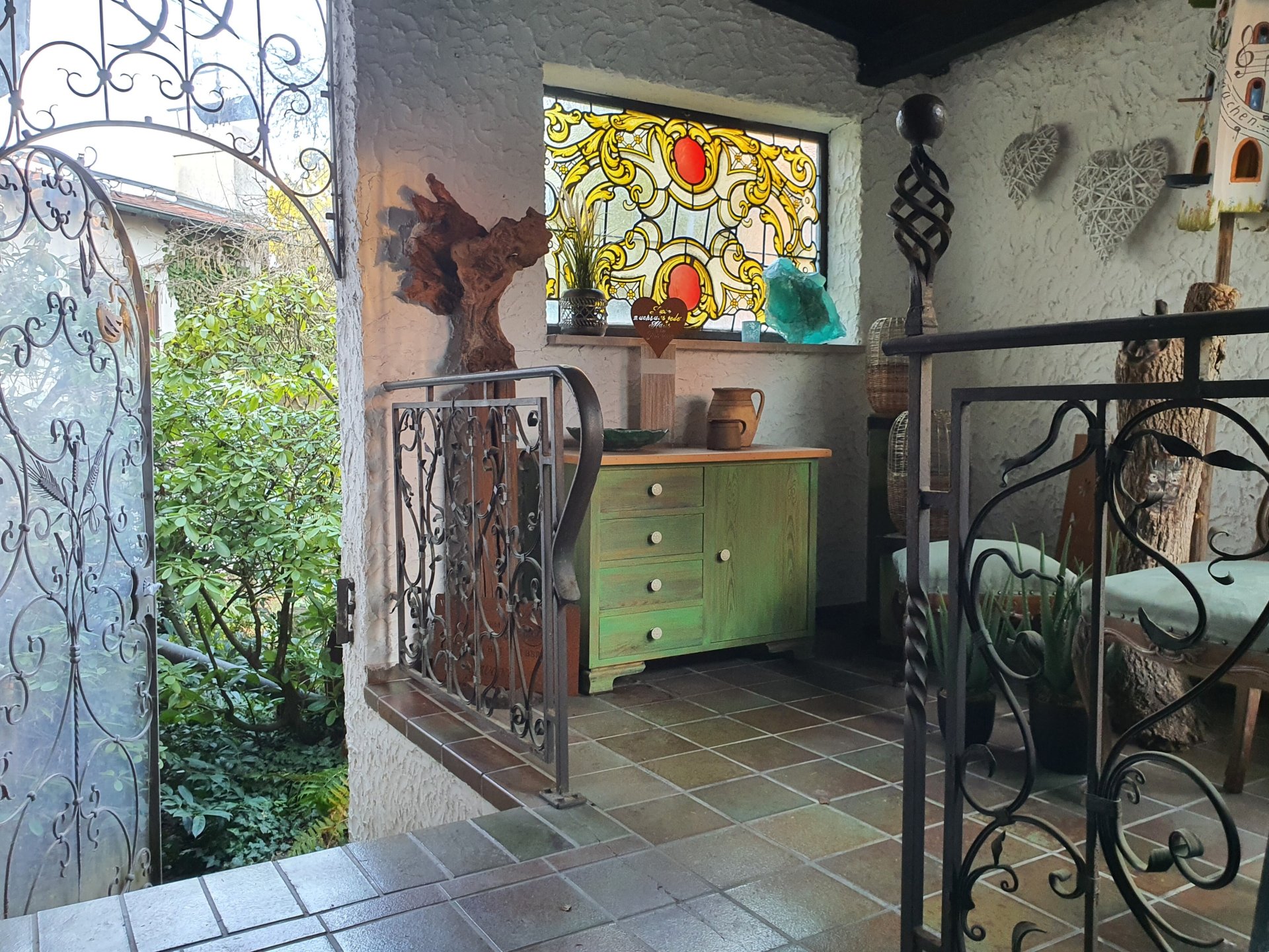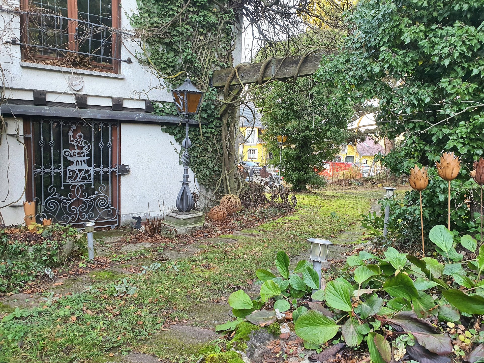 Schon beim Betreten des Grundstücks offenbart sich der besondere Charakter dieses Künstlerhauses.