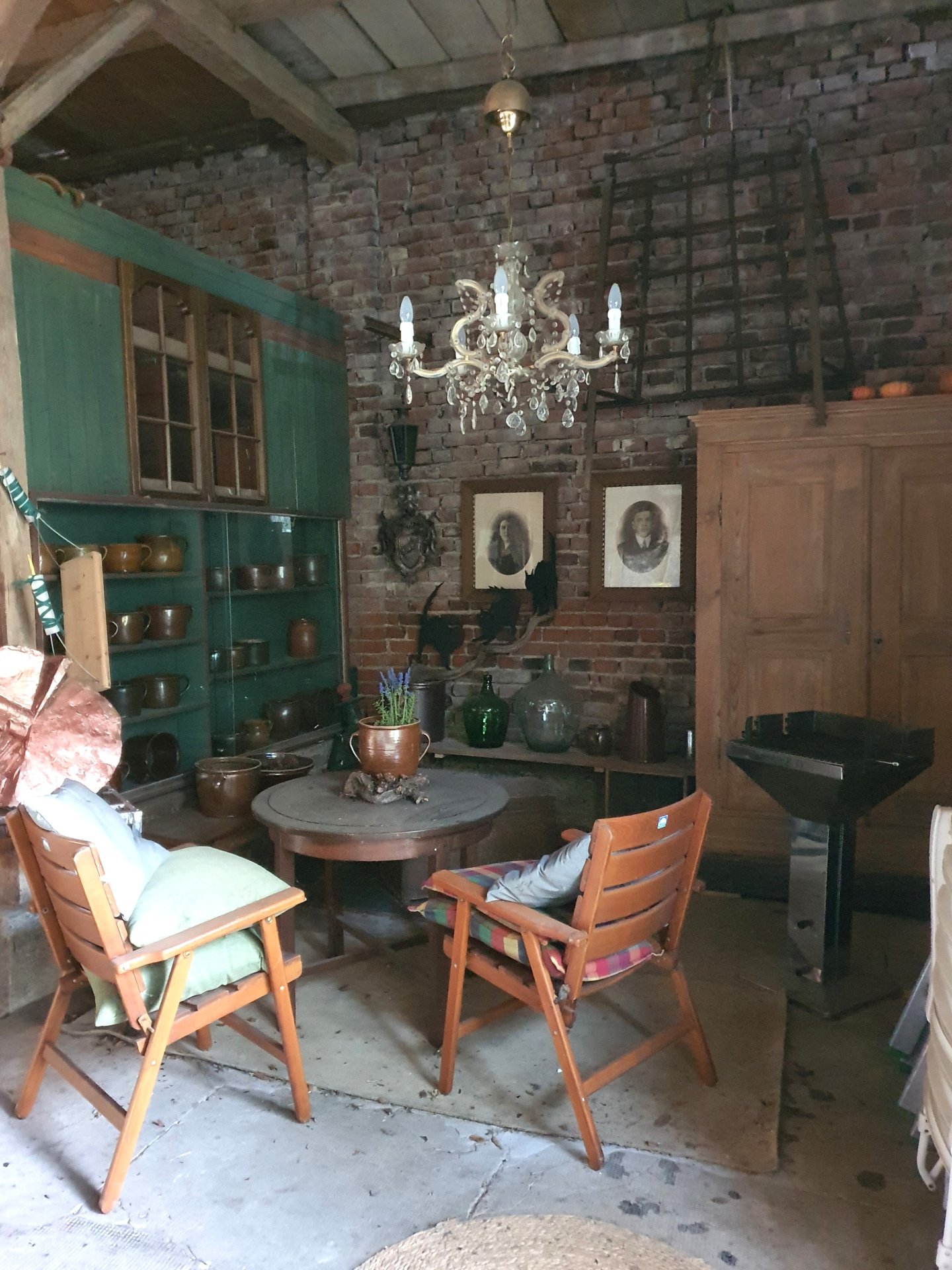 Der Garten rund um Haus und Scheune bietet verschiedene Rückzugsorte, die zum Entspannen, Träumen oder kreativen Arbeiten einladen.