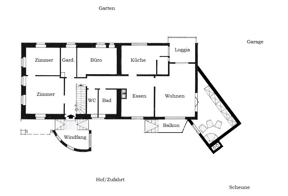 Das Anwesen befindet sich auf einem charmanten Eckgrundstück, das von zwei Seiten befahrbar ist und dadurch eine besondere Flexibilität bietet. Trotz der zentralen Lage wirkt das Grundstück weitläufig und zurückgezogen ein idealer Ort, der dörfliche Gelassenheit mit praktischer Erreichbarkeit verbindet.