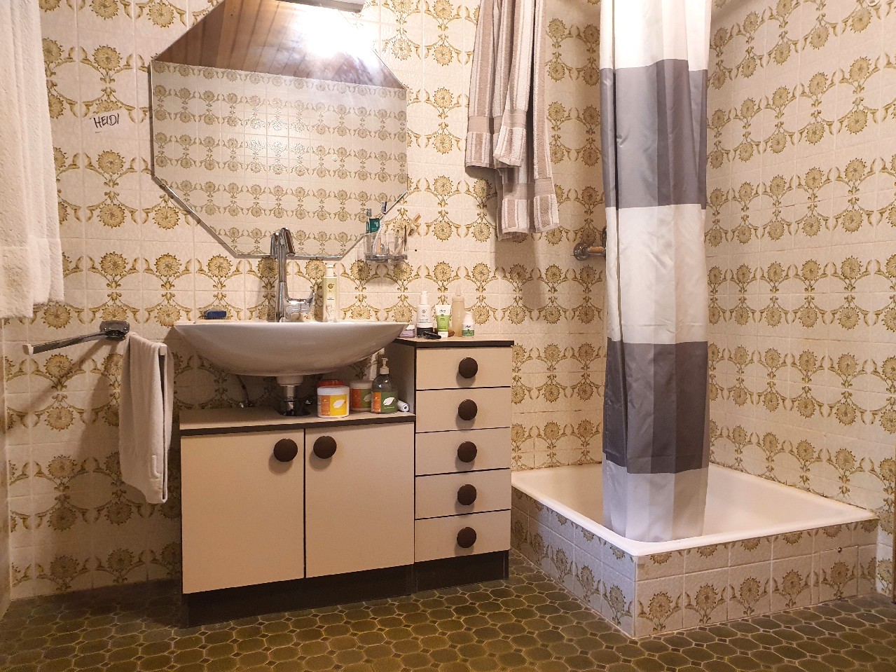 Ein großer Specksteinofen im Wohnbereich sorgt für eine behagliche Wärme und unterstützt die Gemütlichkeit. Die Wohnung ist etwas in die Jahre gekommen, von daher ideal für alle die ihr Zuhause individuell gestalten möchten.