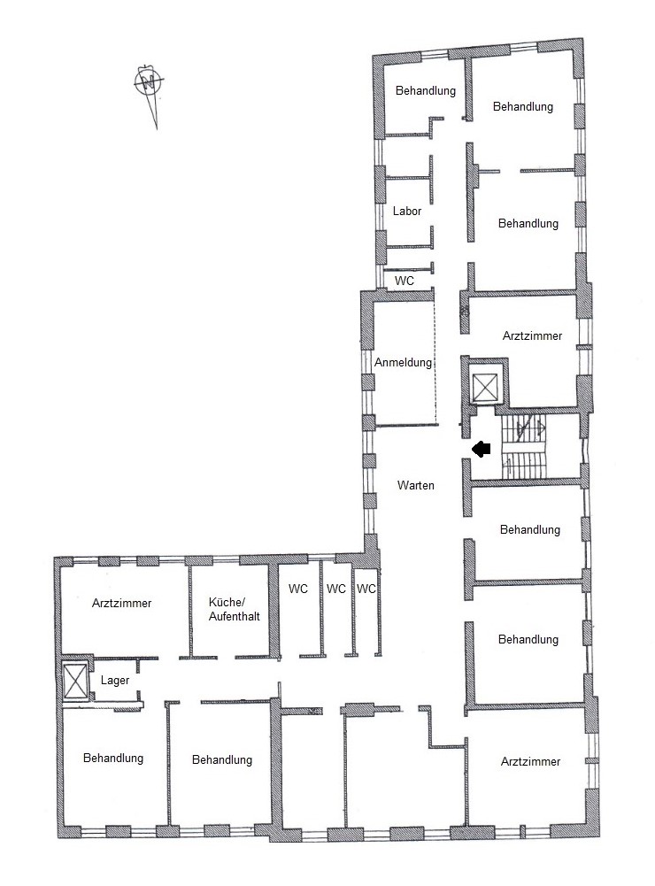 In den vergangenen 25 Jahren wurde die Einheit erfolgreich als Hausarztpraxis, Heilpraktikerpraxis sowie Physiotherapiepraxis genutzt. Die bestehende Aufteilung eignet sich ideal für medizinische, therapeutische oder beratende Berufe lässt sich aber ebenso individuell an andere gewerbliche oder ggf. private Konzepte anpassen.