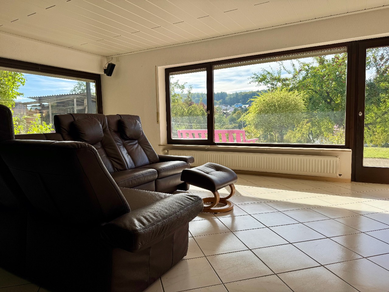 Das 1975 erbaute Haus besticht durch seine solide Bauweise und wurde liebevoll gepflegt und erweitert. Besonders eindrucksvoll ist der Wintergarten: lichtdurchflutet, mit herrlichem Blick auf den See und ins Grüne – ein Platz, der jeden Tag zu etwas Besonderem macht.