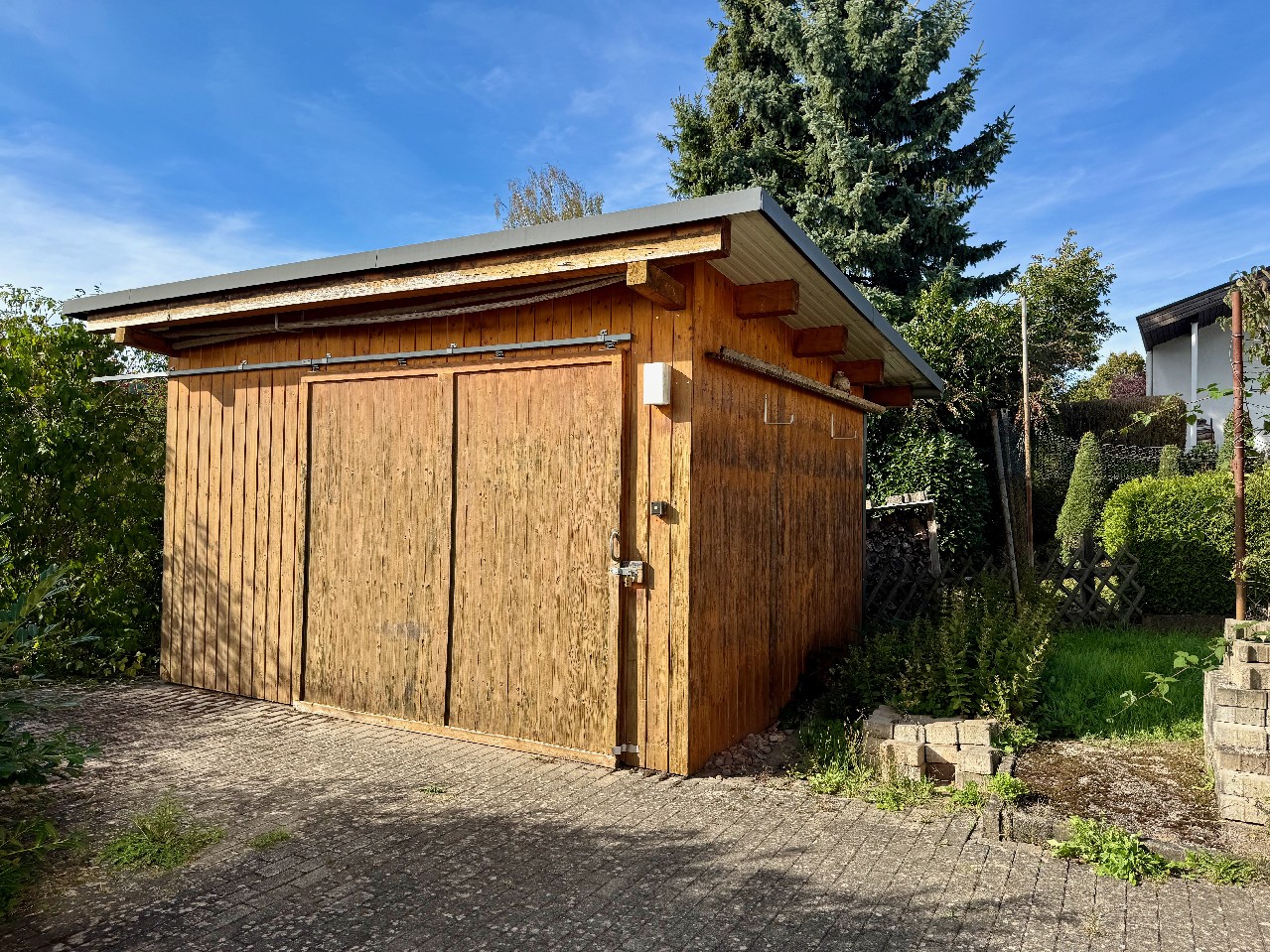 Auf dem 2.246 m² großen Grundstück warten nicht nur eine 2007 errichtete Gerätehalle und weitere Nebengebäude mit zusätzlicher Nutzfläche, die ehemalige Klärgrube wurde zur 10.000-Liter-Zisterne umfunktioniert, die heute als wertvolle Wasserreserve dient – ein absoluter Pluspunkt für Gartenliebhaber und nachhaltig denkende Käufer.