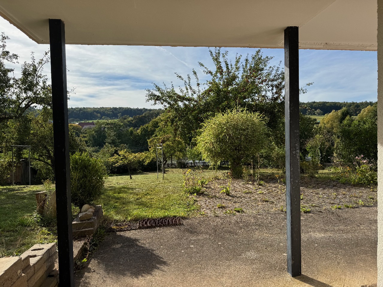Raum für Gartenmöbel vom Wintergarten aus zugänglich.