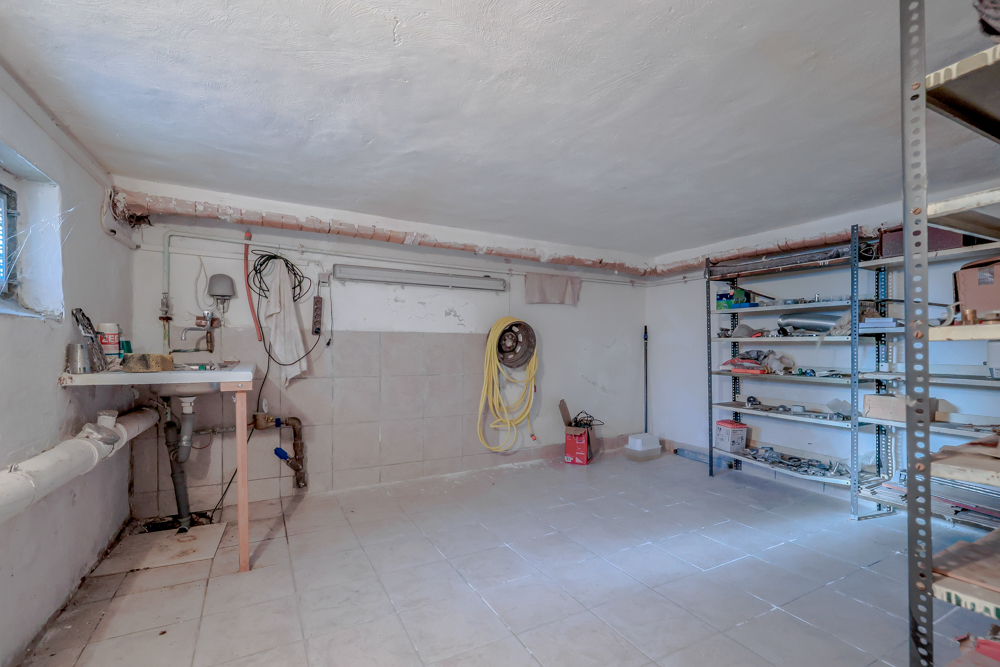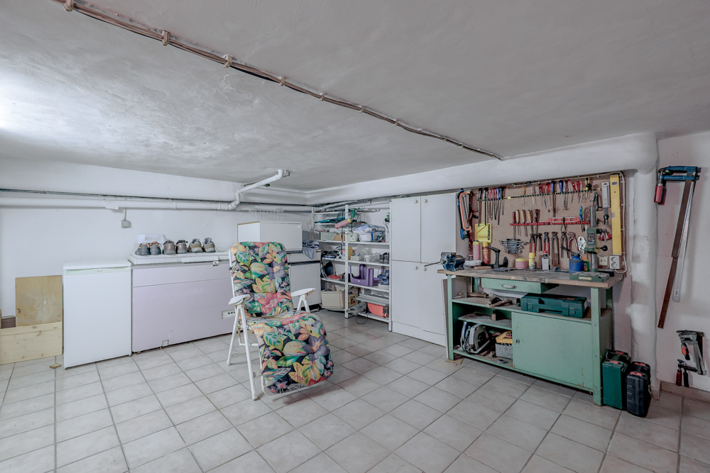 Heizungskeller mit älterer Heizungsanlage, mehrere Abstellräume (niedrige Deckenhöhen), Waschküche mit Außentreppe, Regenwasserspeicher für nachhaltige Nutzung.