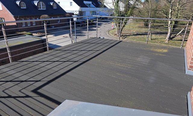 Das Dachgeschoss mit ca.120m² Wohnfläche und 3 Zimmer hat die Besonderheit eines Studios, erreichbar über eine interne Treppe. Loggia, große Küche, Bad mit Wanne und Dusche, Holzdielen und Fliesen.