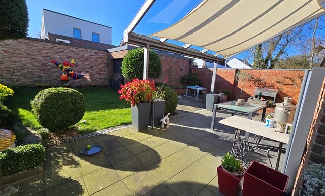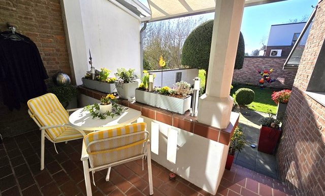 Erdgeschoss ca. 115m² Wohnfläche und 1 Garage. 4 Zimmer, große Küche, Bad mit Wanne und Bidet, vor ca.7 Jahren bodentiefe neue Dusche im Bad. Loggia und sehr große überdachte Terrasse und Garten. Holzdielen und PVC- Belag, Schlafzimmer mit Ankleide. Etwa 2/3 der Wohnfläche Fußbodenheizung. Gaszentralheizung. Eigener Kellerzugang auch von der Terrasse.