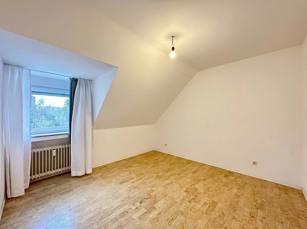 Typisch für das Dachgeschoss sorgen die leichten Schrägen für eine gemütliche Wohnatmosphäre und verleihen der Wohnung ihren besonderen Charakter.