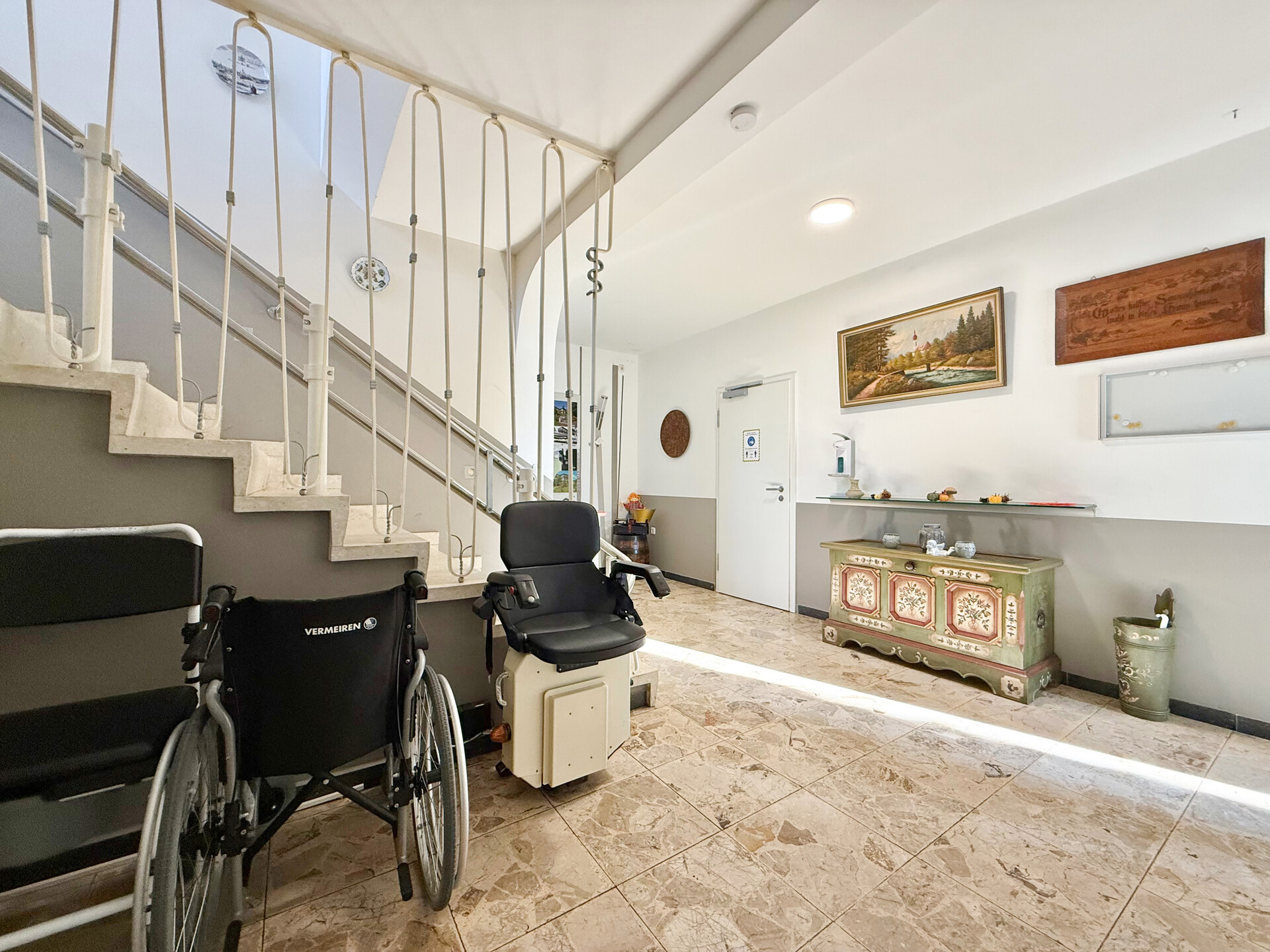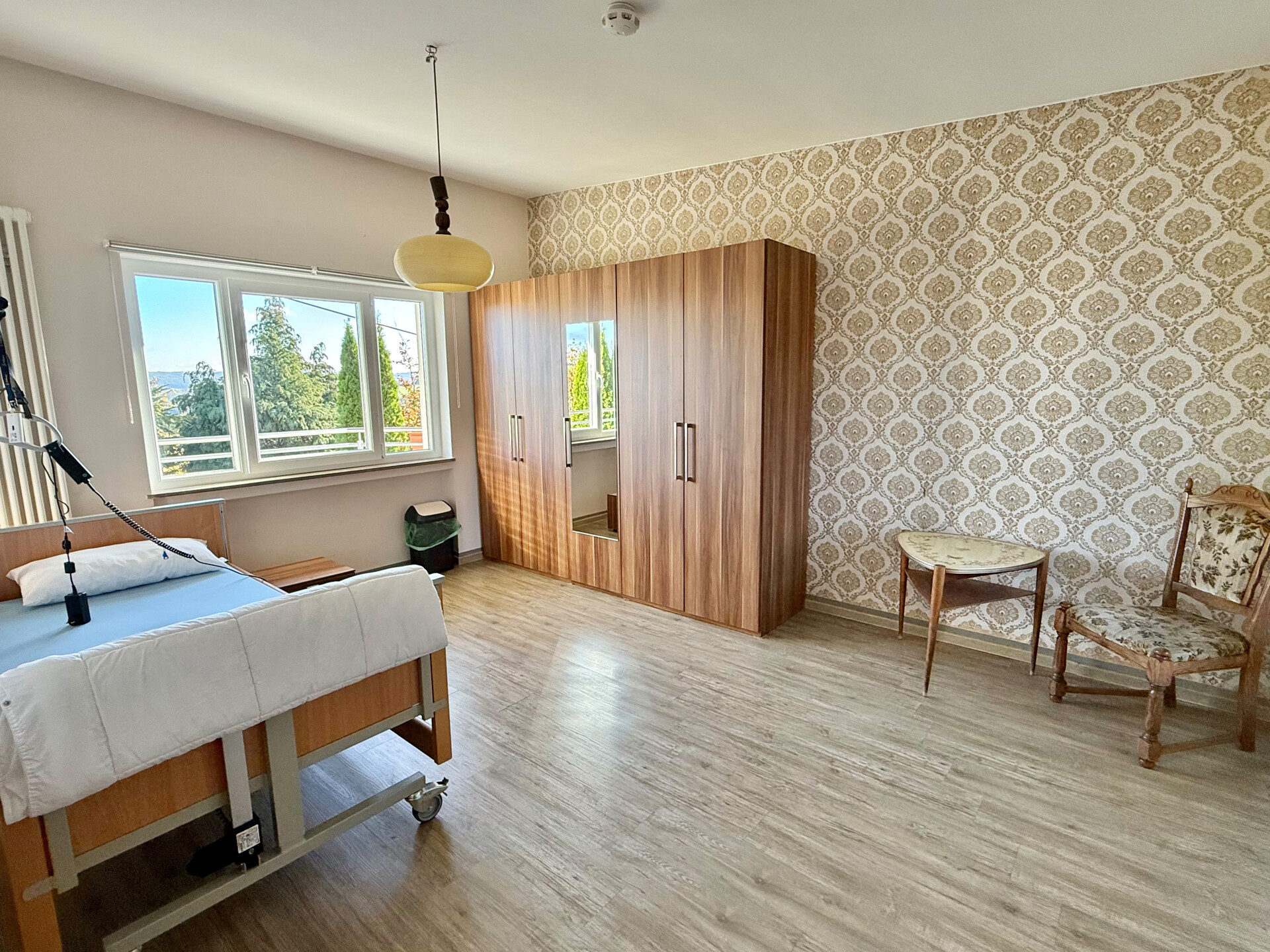 Diese gepflegte und liebevoll modernisierte Immobilie bietet ideale Voraussetzungen für den Betrieb einer Senioren-Wohngemeinschaft. Die Nutzung ist offiziell genehmigt und kann ohne erneute Umwidmung fortgeführt werden. Derzeit stehen 9 Pflegeplätze zur Verfügung – eine Aufstockung auf bis zu 12 Betten ist möglich. Das 1956 errichtete Haus wurde umfassend saniert: neue Elektroinstallationen in EG und OG, Dämmung der Heizkörpernischen, Fassaden- und Kellerisolierung, Neuaufforstung des Hanggartens sowie Kompletterneuerung der Küche. Ein gewarteter, voll funktionsfähiger Aufsitz-Treppenlift sowie zwei Rampen ermöglichen einen barrierefreien Zugang.