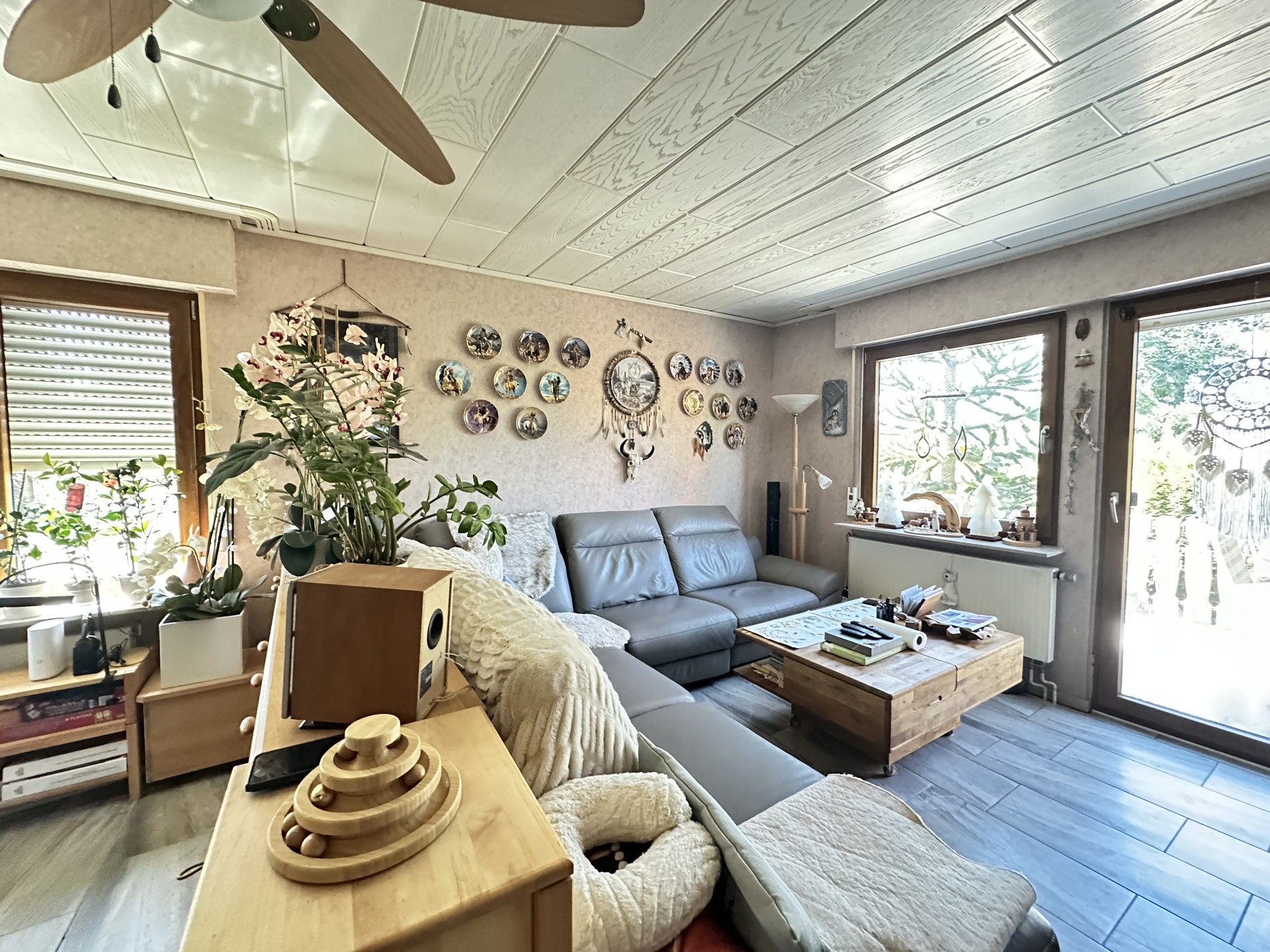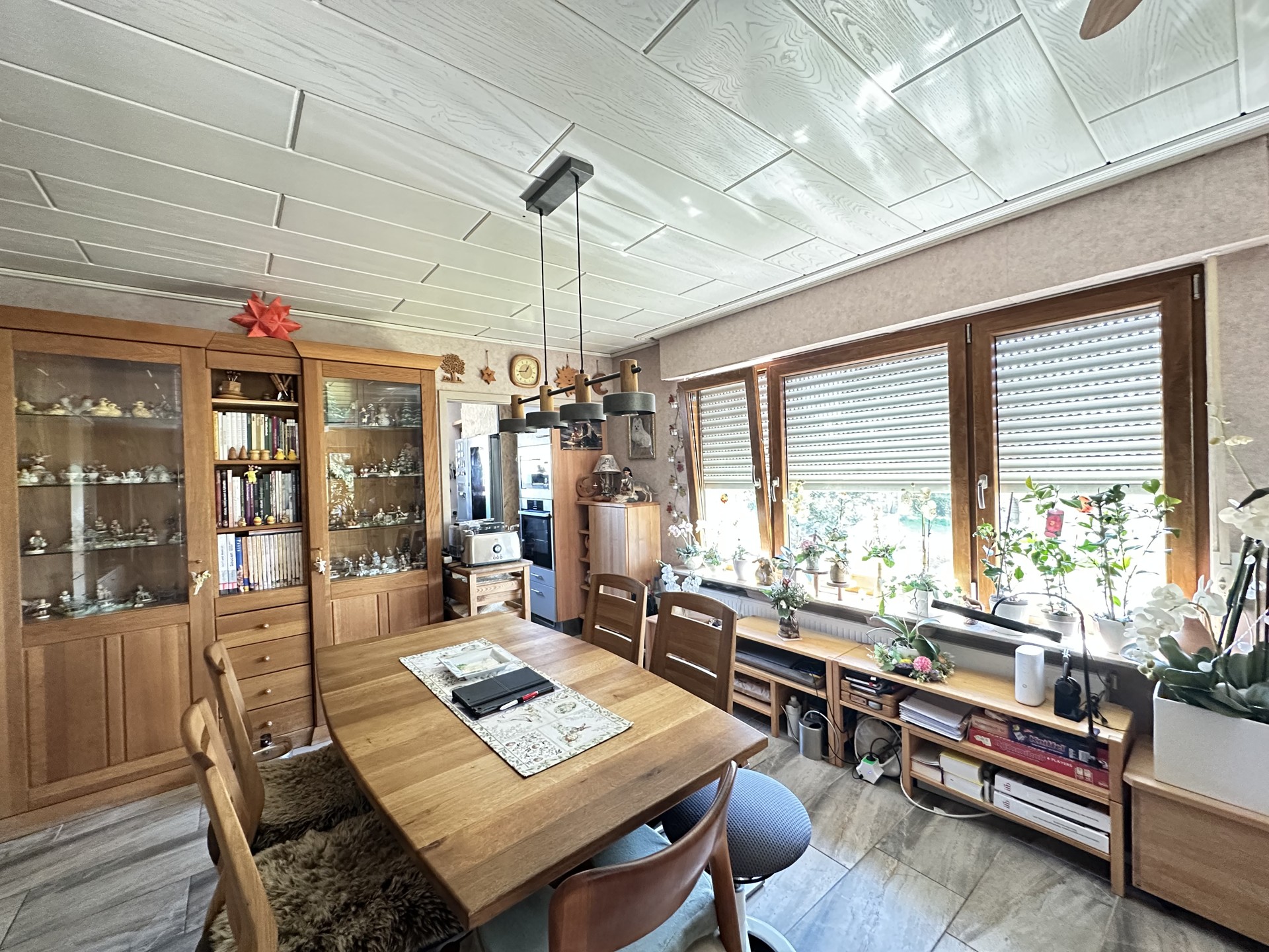 Das Wohnhaus wird mit einer Öl-Zentralheizung (1995) Niedertemperatur beheizt, die Fenster(2009) sind Akustik isolierverglast und mit Rollläden versehen. Als Bodenbelag wurden Laminat und Fliesen (2023)gewählt. Neue Innentüren 2024.