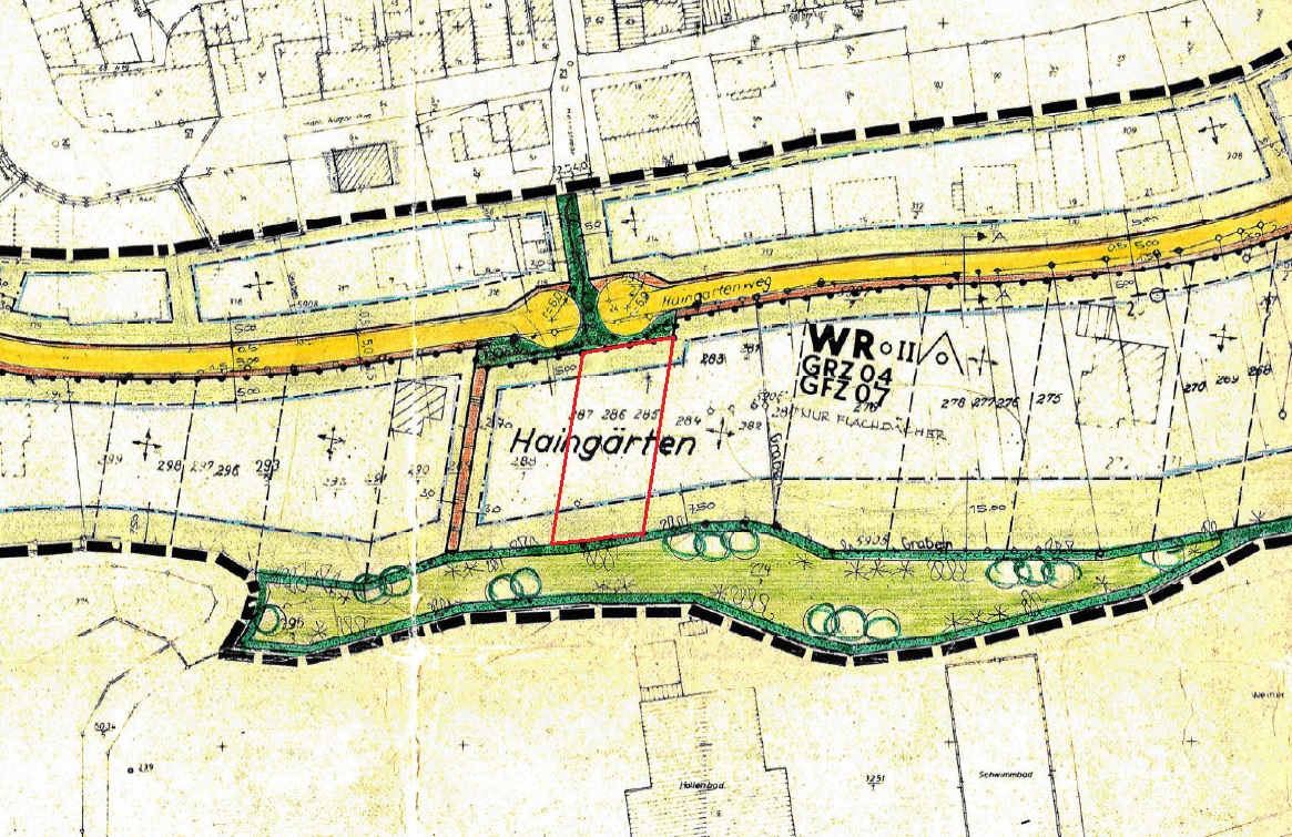Ein Bebauungsplan liegt vor und gibt den Rahmen für die zukünftige Bebauung vor.