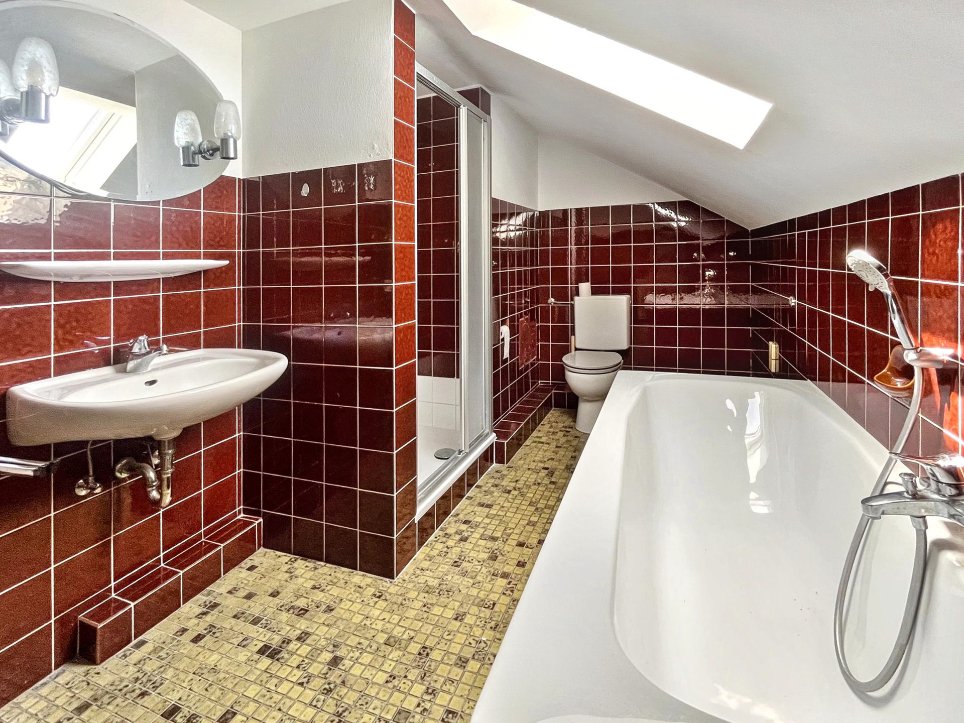 Dieses gepflegte Mehrfamilienhaus mit insgesamt sechs Wohneinheiten und einem bereits ausgebauten Dachgeschoss bietet eine attraktive Kombination aus solider Bausubstanz, modernisierter Ausstattung und weiterem Entwicklungspotenzial. Der Dachgeschossausbau ist derzeit nicht genehmigt und müsste im Rahmen einer Nachgenehmigung formalisiert werden.