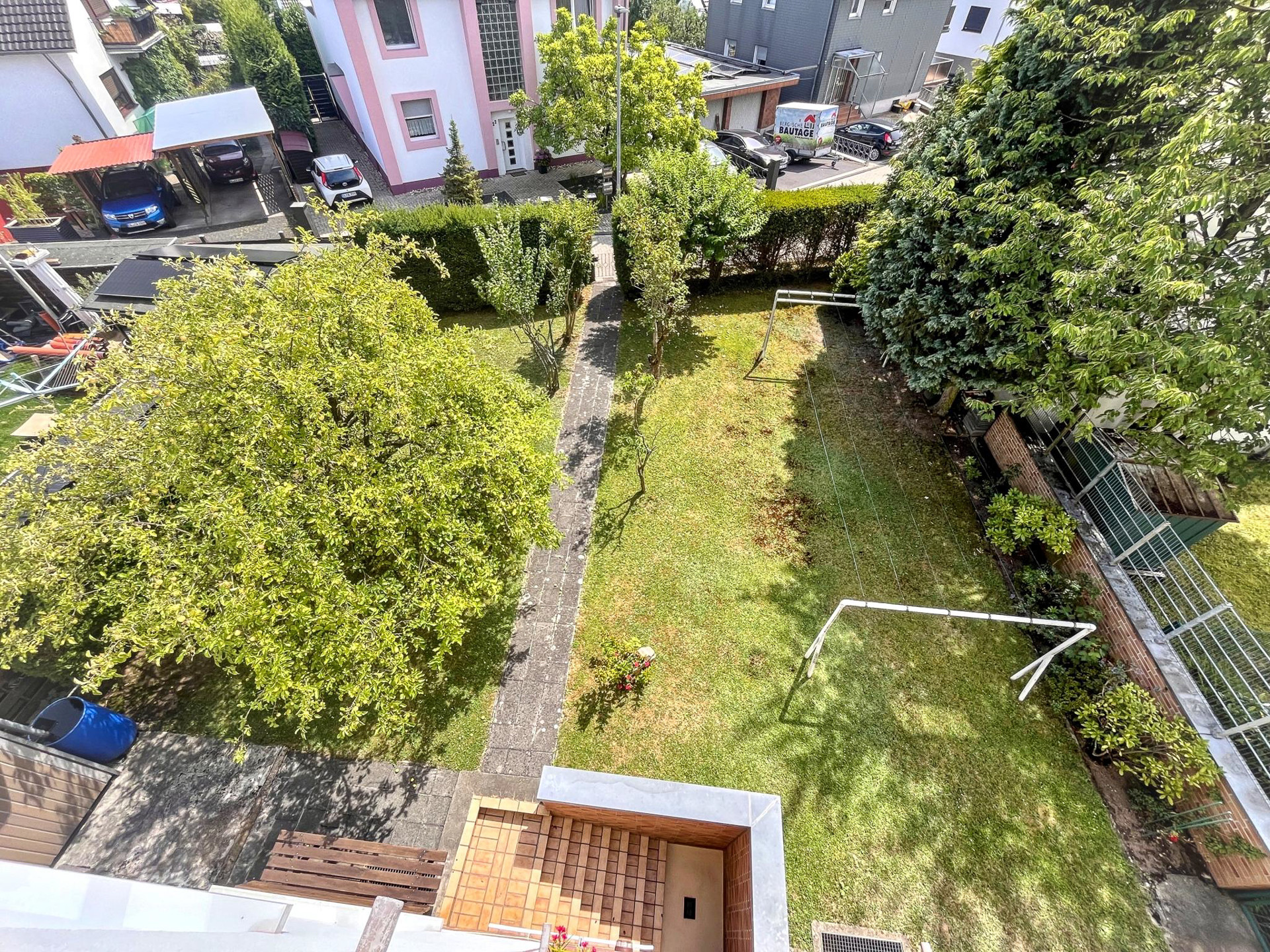 Nach Aussage der Stadt Rösrath, könnte von der Rückseite aus auf dem Grundstück Garagen, Stellplätze oder ein Anbau an das bestehende Wohnhaus errichtet werden.