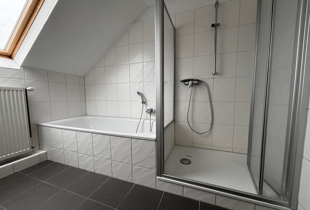 • Badausstattung: Dusche, Badewanne, Fenster im Badezimmer