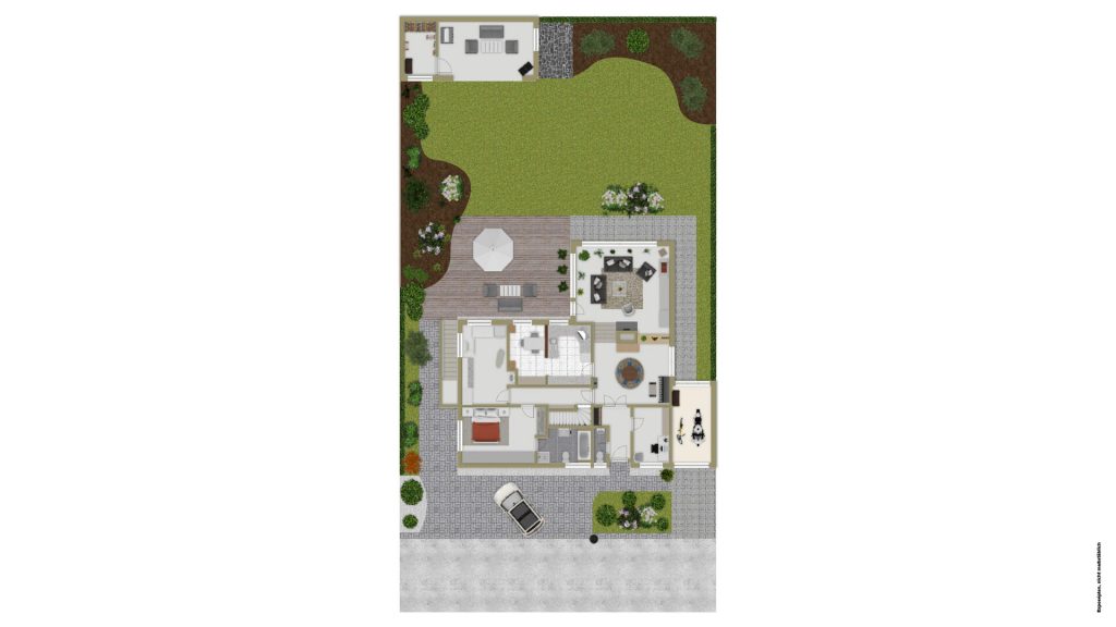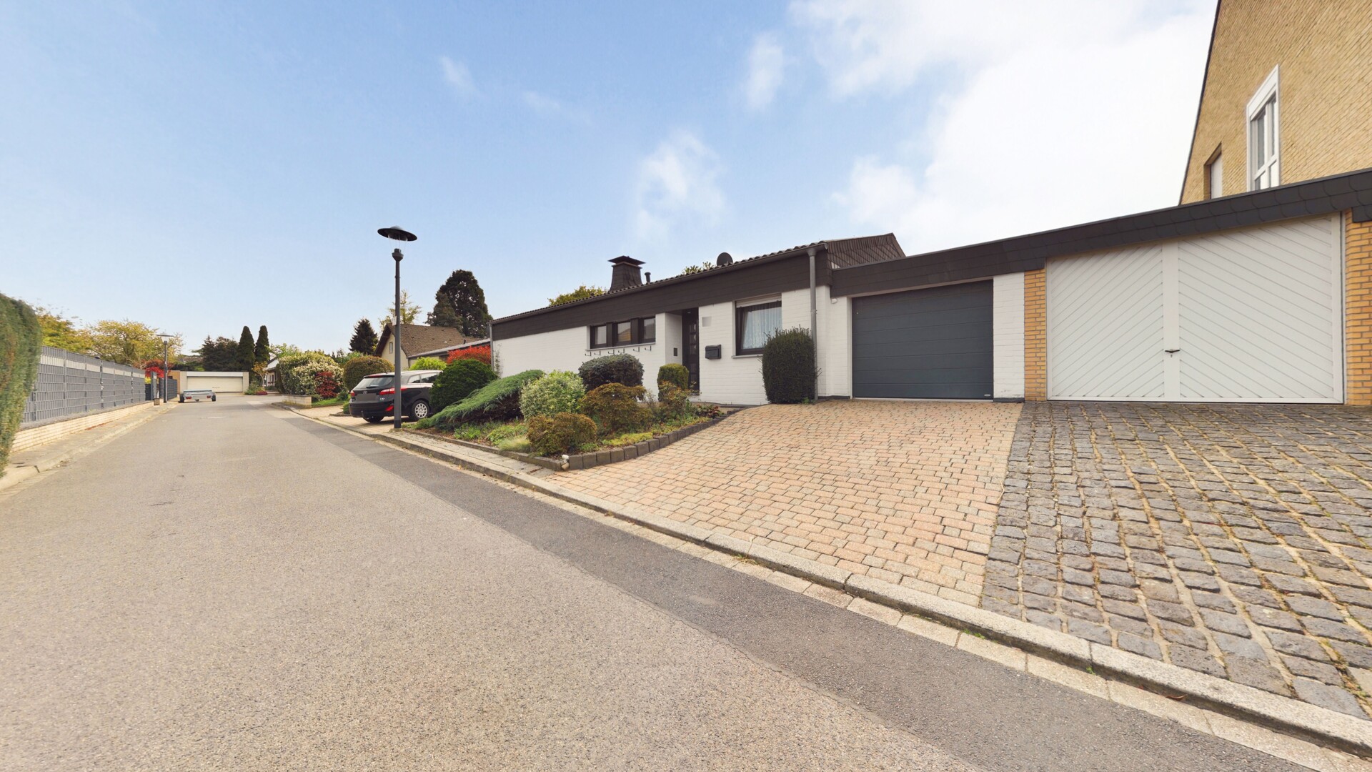 Dieser im Jahr 1973 in solider Massivbauweise errichtete Bungalow vereint zeitlose Architektur mit dem begehrten Komfort des barrierefreien Wohnens auf einer Ebene. Auf einem ca. 711 m² großen Grundstück in einer ruhigen, gewachsenen Wohnstraße gelegen, besticht die Immobilie durch ein äußerst gepflegtes Gesamtbild und eine durchdachte Raumstruktur. Schon beim Annähern an das Objekt vermittelt die gepflegte Nachbarschaft ein Gefühl von hoher Lebensqualität. Die großzügige Einfahrt mit integrierter Garage, der separate Stellplatz und das rund um das Haus hochwertig erneuerte Altstadtpflaster unterstreichen den wertigen Charakter und sorgen für eine ästhetische Gestaltung der Außenflächen.