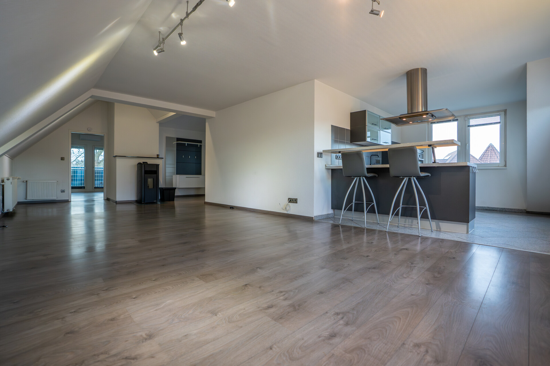 Der offene Wohnbereich ist das Herzstück der Wohnung und bietet viel Platz für Ihre individuellen Gestaltungsideen. Für wohlige Wärme sorgt der Pelletofen der Marke Palazzetti, der die Hauptwärme liefert und daher die Heizungsanlage nur in seltenen Fällen benötigt wird. Ergänzend sorgt eine Split-Klimaanlage im Schlafzimmer für angenehme Temperaturen – sowohl zum Kühlen im Sommer als auch zum Wärmen in der Übergangszeit.