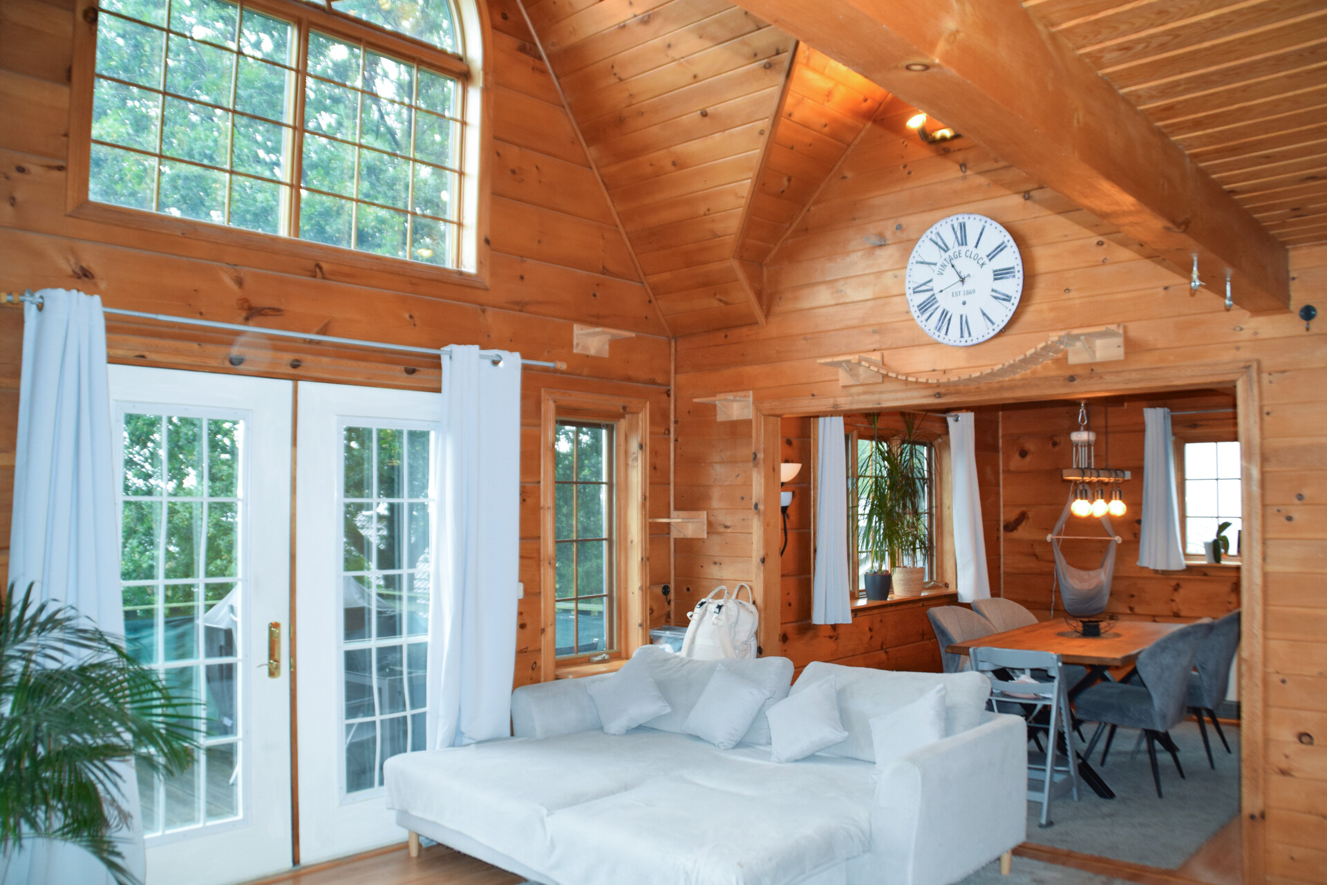 Das offene Wohnzimmer mit Kamin ist das Herzstück des Hauses: Durch die hohe Decke bis unters Dach entsteht ein großzügiger, lichtdurchfluteter Wohnbereich, der sofort zum Ankommen und Wohlfühlen einlädt. Die angrenzende offene Küche macht gemeinsame Kochmomente zu einem besonderen Erlebnis.