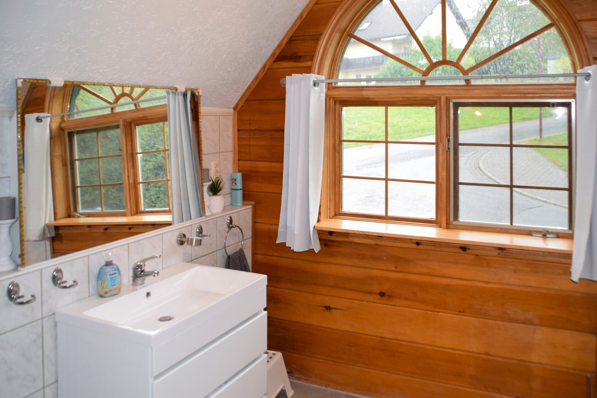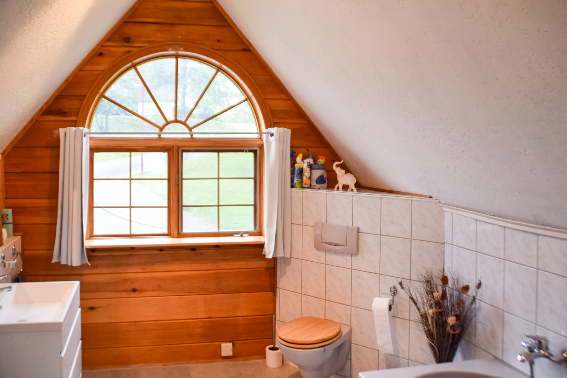Im Erdgeschoss befinden sich ein Schlafzimmer sowie ein Gäste-WC mit Dusche – praktisch und komfortabel zugleich. Im Obergeschoss erwarten Sie zwei weitere, helle Zimmer und ein geräumiges lichtdurchflutetes Badezimmer.