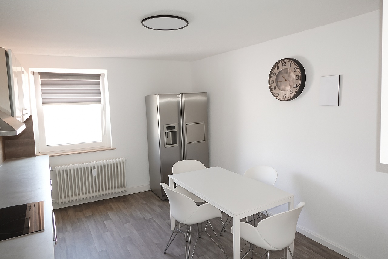 Die ca. 105 m² große 4- Zimmerwohnung im OG wird zusammenhängend mit einer ca. 43 m² großen wohnlich ausgebauten Fläche im DG aktuell von einer Mietpartei genutzt. Aktuell erfolgt der Zugang jeweils über das Treppenhaus. Bei Bedarf könnte man das Treppenhaus im OG jedoch auch verschließen, um eine ca. 148 m² große zusammenhängende Wohnung zu schaffen. Sowohl die Wohnungen im OG als auch die wohnlich genutzten Flächen im DG wurden erst 2022 teilmodernisiert.