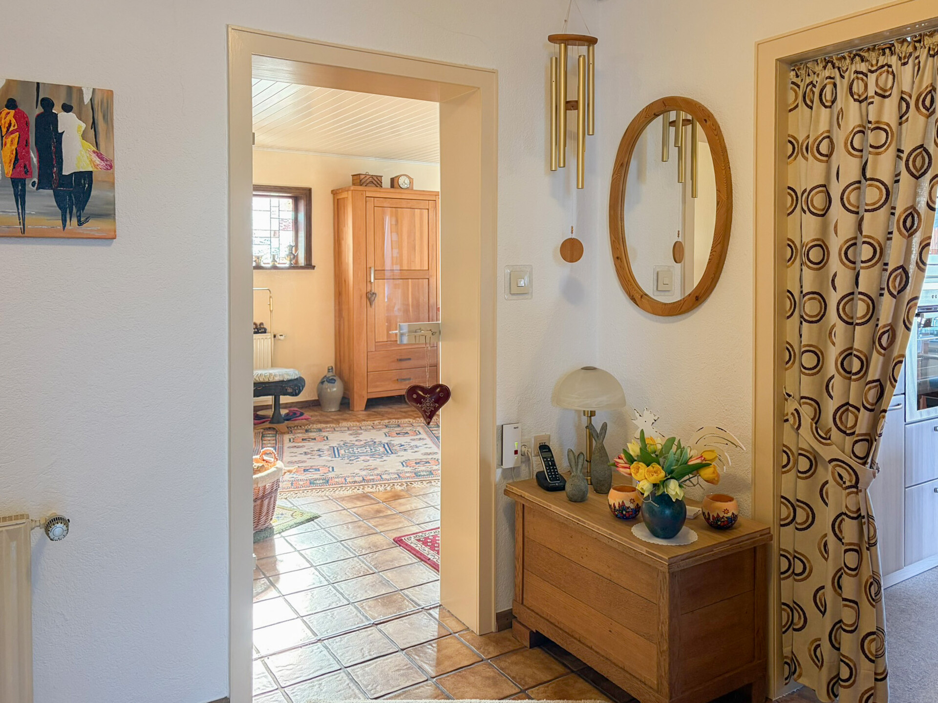 Mit vier Schlafzimmern und zwei Bädern ist das Haus besonders flexibel nutzbar – ideal für Familien, Mehrgenerationenwohnen oder die Kombination aus Eigenbedarf und Vermietung. Ein Kamin im Wohnbereich sorgt für zusätzliche Gemütlichkeit, während der vollständig ausgebaute Keller wertvollen Stauraum und vielseitige Nutzflächen bietet. Ein praktischer Treppenlift verbindet Erdgeschoss und Dachgeschoss und erleichtert den Alltag erheblich.