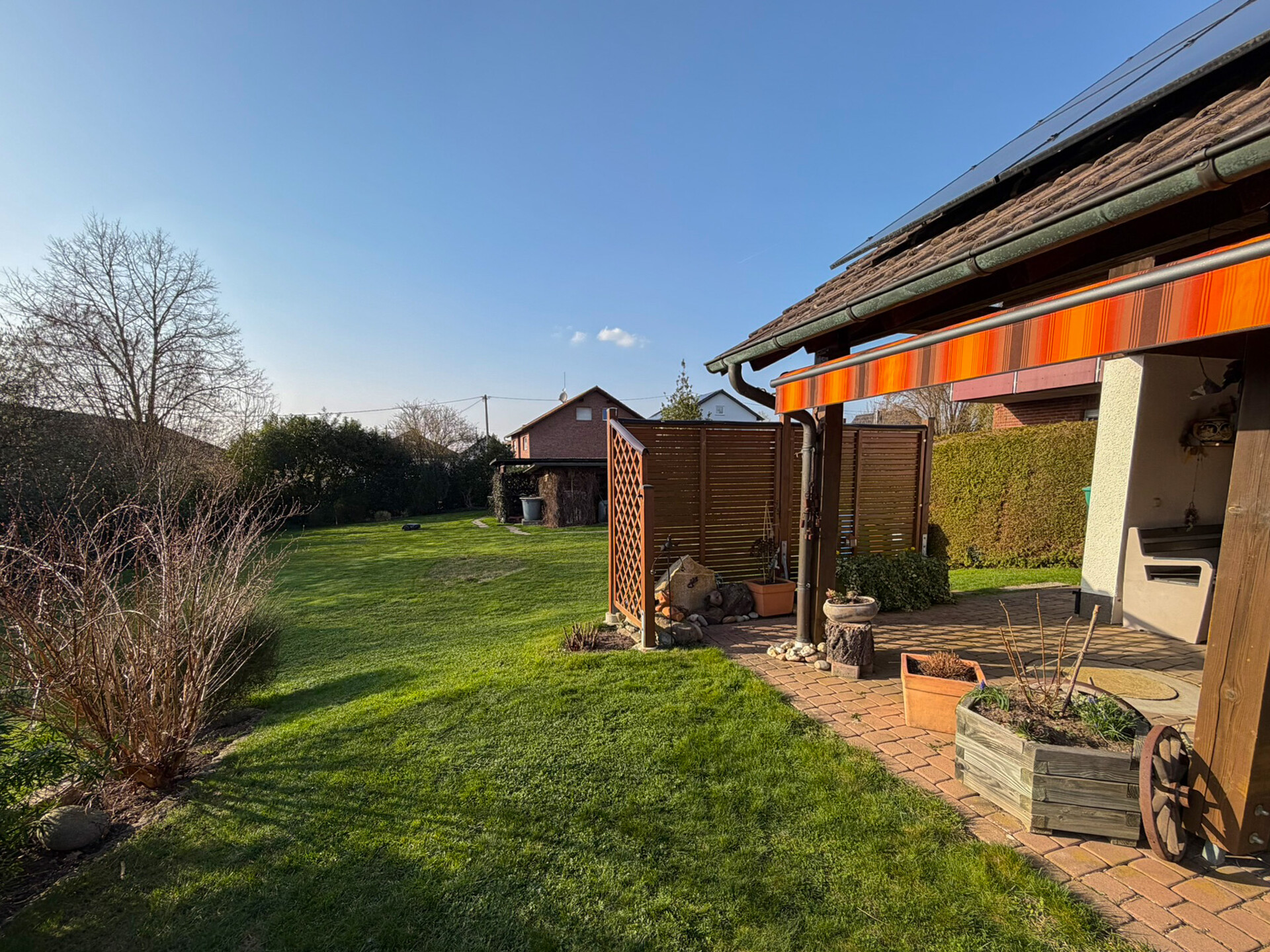 Die Immobilie verfügt über einen gepflegten Garten mit Terrasse, die zum Entspannen und geselligen Beisammensein einlädt. Eine Garage bietet nicht nur Stellplatz für Fahrzeuge, sondern auf deren Dach wurde 2024 eine Photovoltaikanlage installiert, die nachhaltige Energie liefert. Ergänzend befindet sich auf dem Grundstück eine Wasserzisterne mit einem Fassungsvermögen von ca. 6.000 Litern, ideal für die Gartenbewässerung.