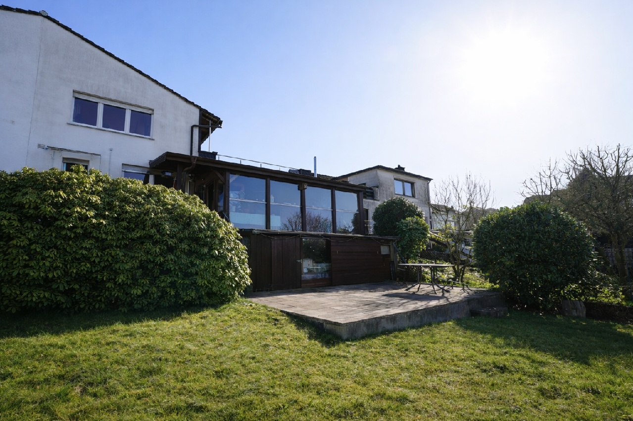 Der Garten bietet eine grüne Rückzugsoase und lädt zum Verweilen im Freien ein. Zusätzlich steht Ihnen ein 1989 angebauter und beheizter Wintergarten zur Verfügung, der sowohl vom Garten als auch über die Doppelgarage zugänglich ist und einen schönen Blick ins Grüne ermöglicht.