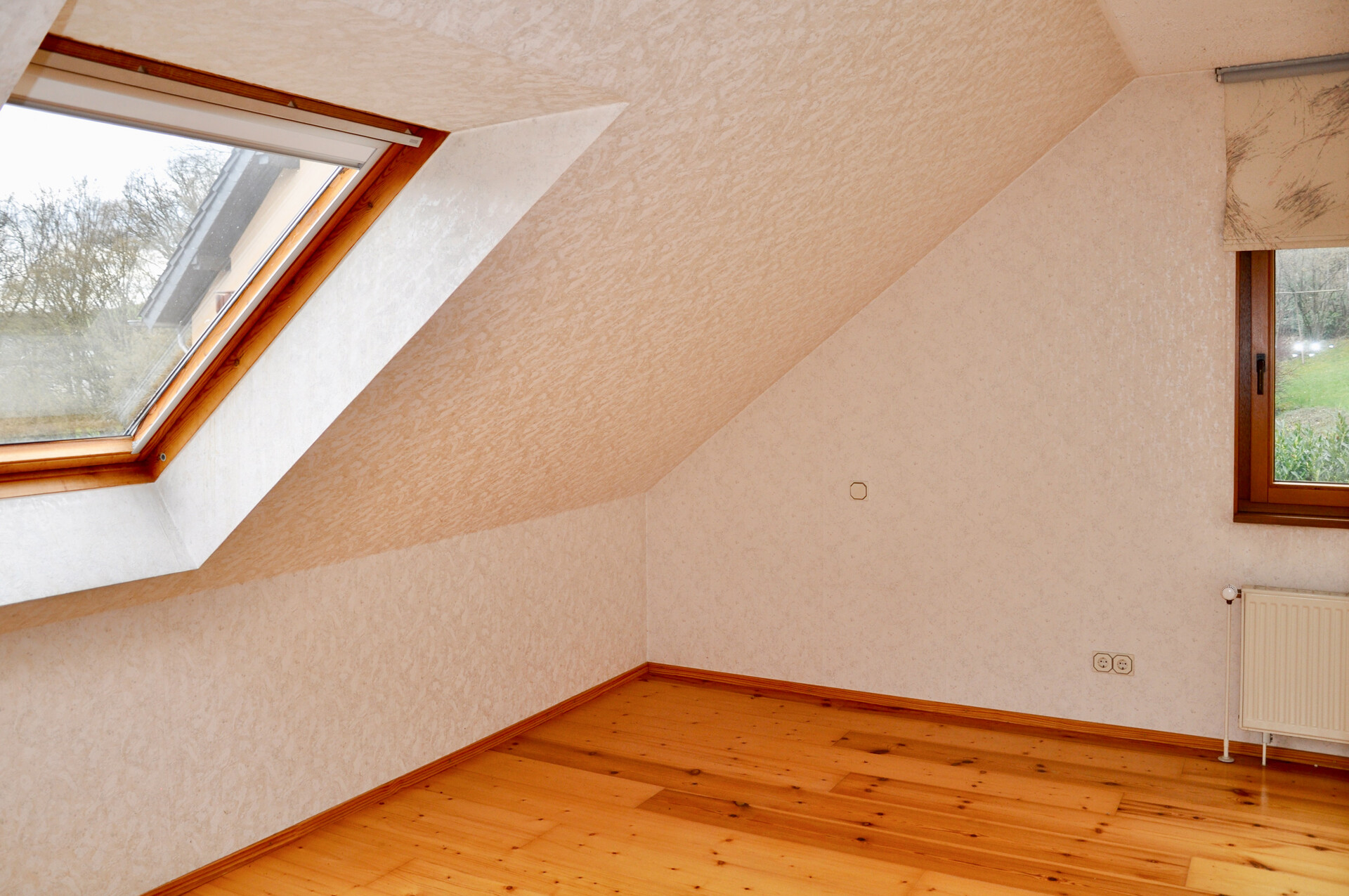 Dieses Einfamilienhaus in Fertigbauweise (Fa. Streif) überzeugt durch seine ruhige Lage, in einer Sackgasse direkt am Waldrand. Von beiden Geschossen aus genießen Sie einen schönen Fernblick ins Grüne und in die Nachbarschaft. Die Immobilie präsentiert sich insgesamt in einem gestaltungsfreudigen Zustand mit reichlich Potenzial, eröffnet jedoch genau dadurch viel Spielraum, eigene Wohnideen zu verwirklichen und das Haus nach persönlichen Vorstellungen zu modernisieren. Das vorbereitete Dachgeschoss bietet die Option zur Schaffung einer separaten Wohneinheit – ideal für Mehrgenerationenwohnen oder zur Vermietung. Das Haus ist voll unterkellert, teilweise wohnlich ausgebaut, und verfügt über eine Garage. Besonders hervorzuheben ist, dass das Flachdach der Garage als großzügige Dachterrasse genutzt werden kann. Ein doppelzügiger Kamin ermöglicht zudem den Anschluss eines Kamins im Wohnzimmer.