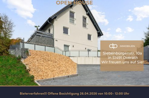 Die Immobilie befindet sich in ruhiger Wohnlage in Overath – eingebettet in eine gewachsene Umgebung mit viel Grün und angenehmer Nachbarschaft. Die Lage zeichnet sich insbesondere durch ihre naturnahe Umgebung aus und bietet gleichzeitig eine gute Anbindung an die umliegenden Städte. Profitieren Sie von der guten Infrastruktur Overaths mit Einkaufsmöglichkeiten, Schulen und einer schnellen Anbindung an die Autobahn A4 in Richtung Köln und Olpe.