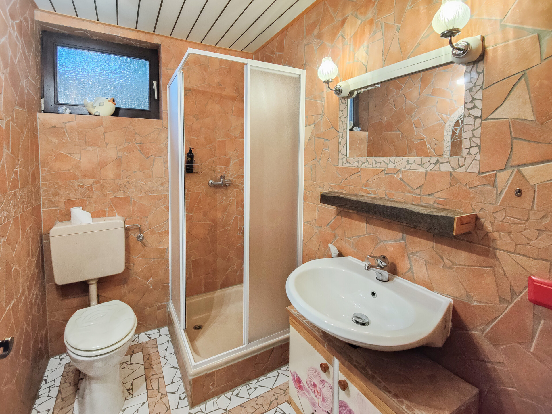 Die doppelverglasten Holzfenster stammen aus dem Baujahr des Hauses und verfügen über manuelle Rollläden. Das Bad im EG wurde erst letztes Jahr modernisiert; das Bad im UG vor ca. 10 Jahren. Das Haus hat erst kürzlich von Außen einen neuen Anstrich erhalten. Im Innenbereich besteht teilweise noch etwas Renovierungsstau.