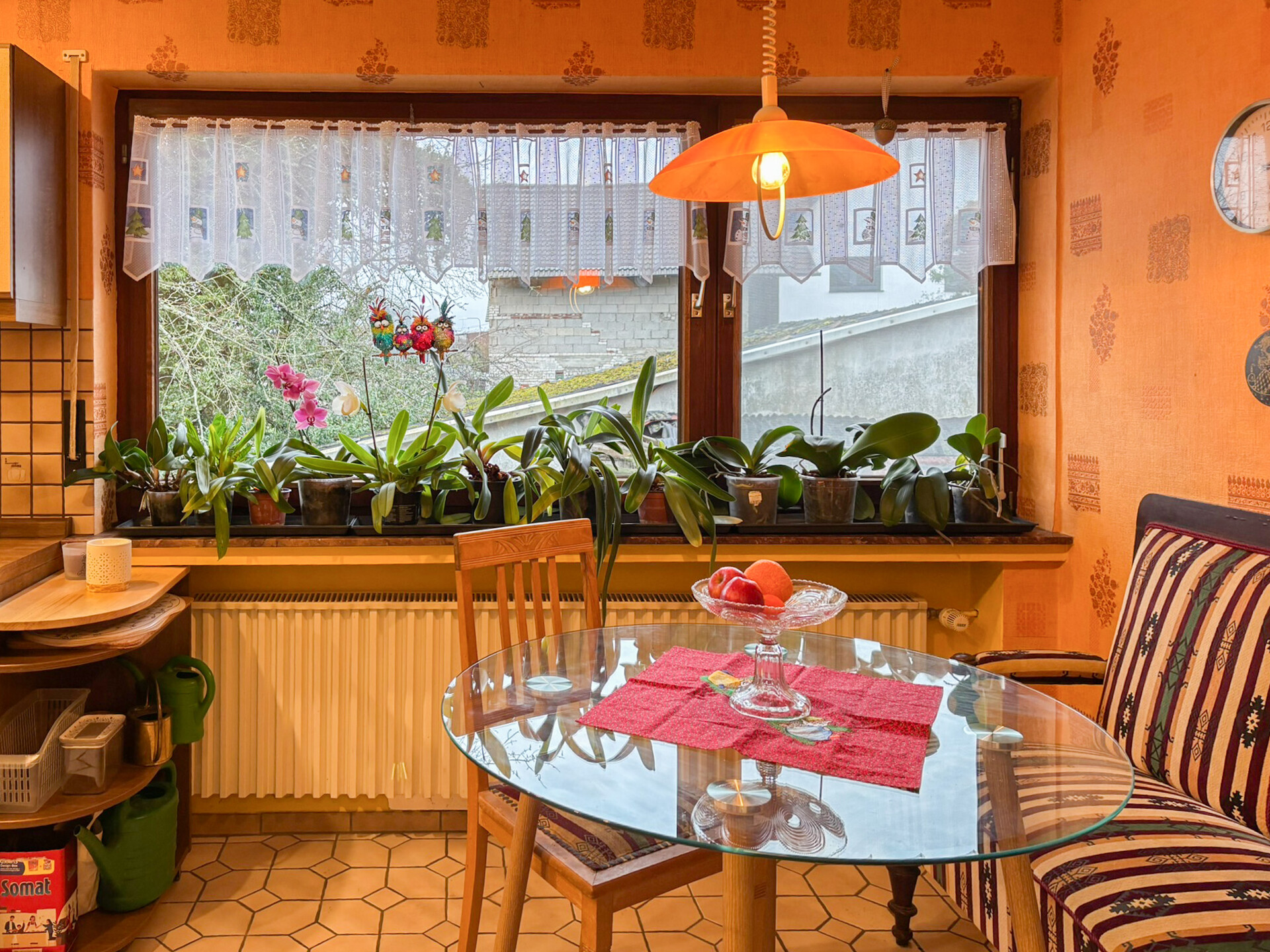 - Bodenbelag: Fliesen, Teppich, Laminat