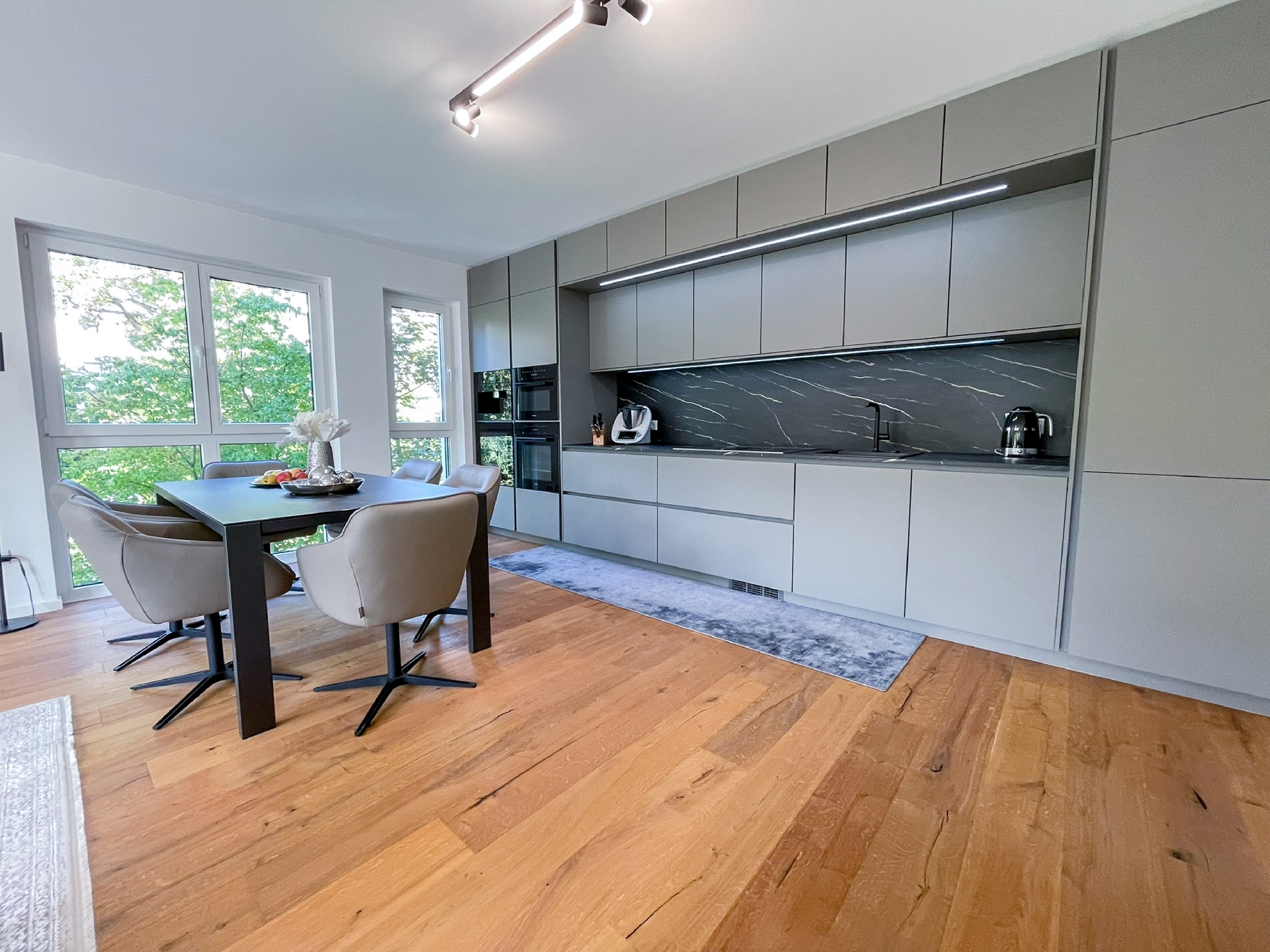 Ein Großteil der stilvollen Möbel sowie die exklusive, maßgefertigte Einbauküche können bei Interesse vom Verkäufer übernommen werden  für einen rundum perfekten Einzug ohne Aufwand.