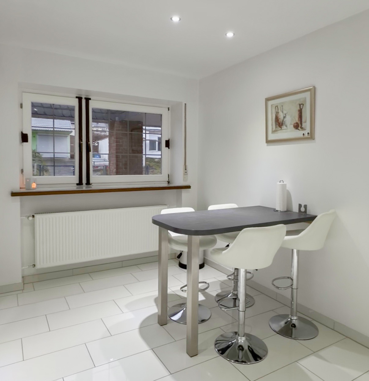 Das Haus präsentiert sich in einem stilvollen, hochwertigen Design, geprägt von eleganten Materialien, großen Fensterflächen und einem durchdachten Raumkonzept. Der lichtdurchflutete Wohn- und Essbereich besticht mit weißen Hochglanzfliesen, einer edlen Natursteinwand und einer harmonischen Wohlfühlatmosphäre. Die neuwertige Einbauküche fügt sich perfekt in das moderne Ambiente ein. Das exklusive Wellnessbad im Erdgeschoss bietet eine großzügige, bodenebene Walk-In-Dusche mit Glasabtrennung, hochwertige Armaturen und geschmackvolle Fliesen. Ein weiteres Highlight ist die beeindruckende Wellnessoase im Untergeschoss: großer Jacuzzi, separate Dusche, viel Platz für Fitnessgeräte sowie ein einladendes Spa-Ambiente machen diesen Bereich zu einem echten Rückzugsort.