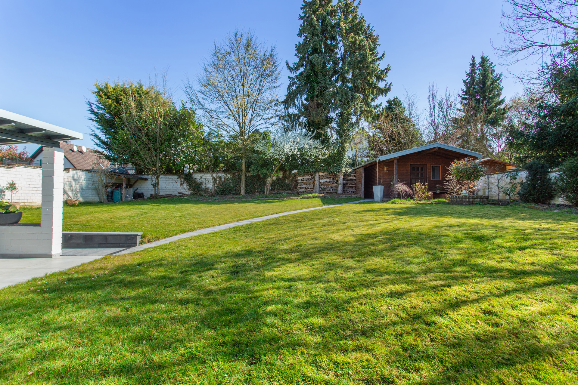 Das großzügige, nahezu 1.000 m² große Grundstück bietet vielfältige Gestaltungsmöglichkeiten – ob als Spielparadies für Kinder oder als idyllischer Rückzugsort mitten im Grünen.
