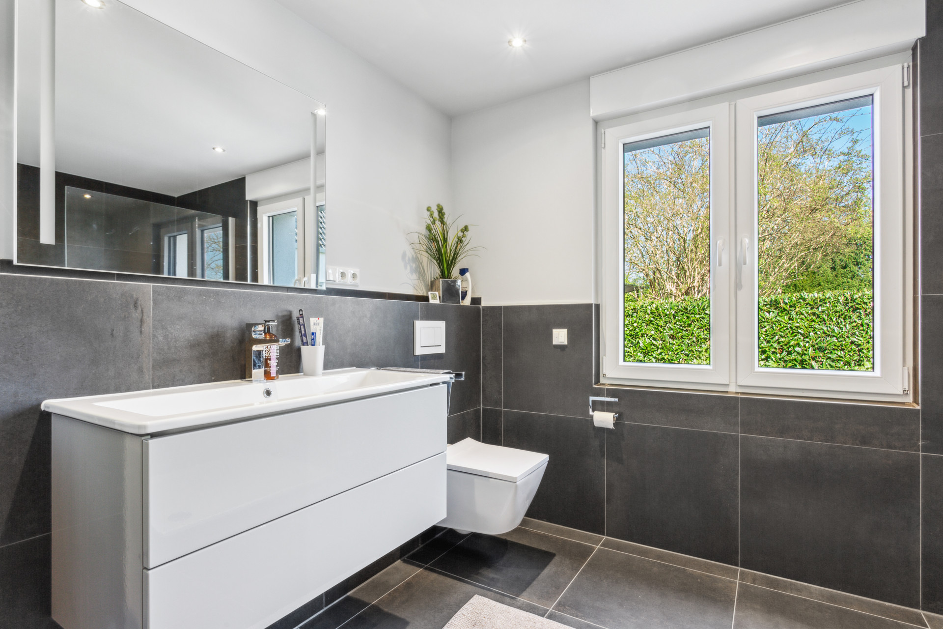Im Dachgeschoss befinden sich zwei bis drei Schlafzimmer sowie ein hochwertig ausgestattetes Badezimmer mit ebenerdiger Dusche – perfekt für Familien oder Paare, die sich Raum für Gäste oder ein Home-Office wünschen.