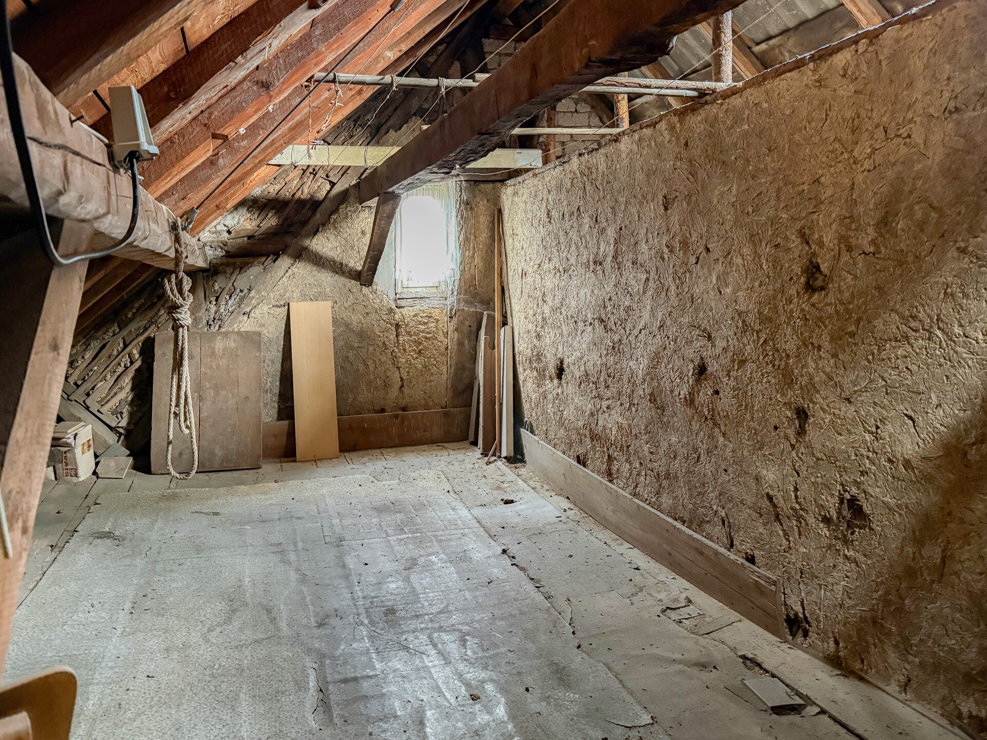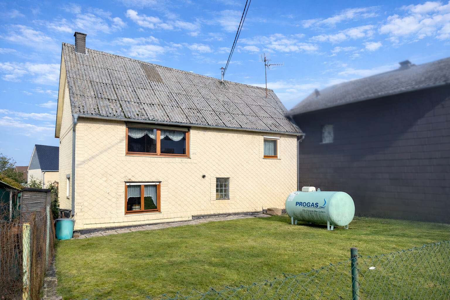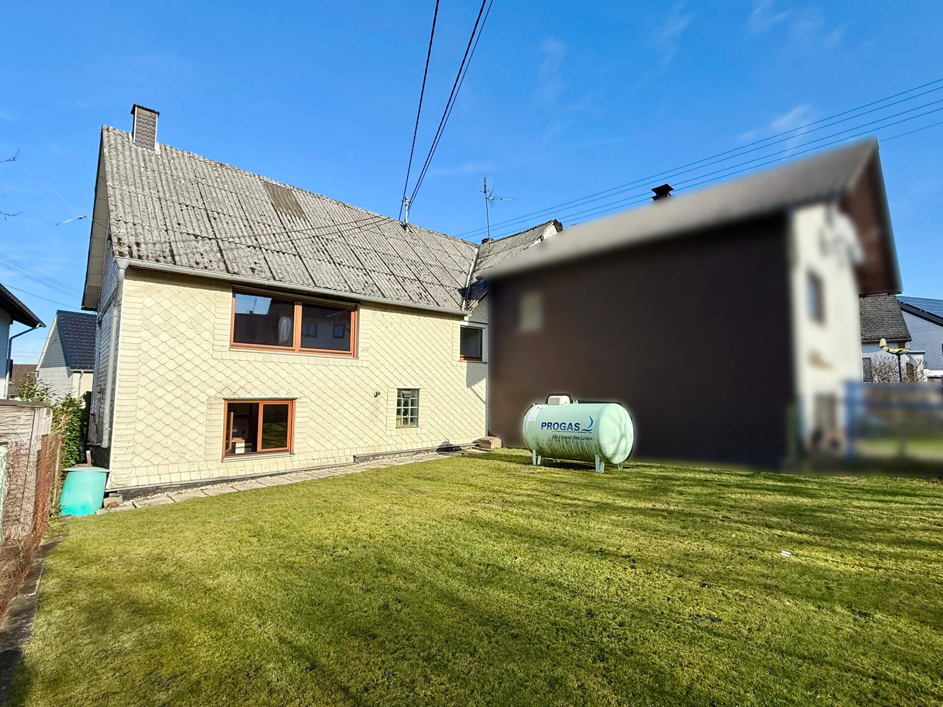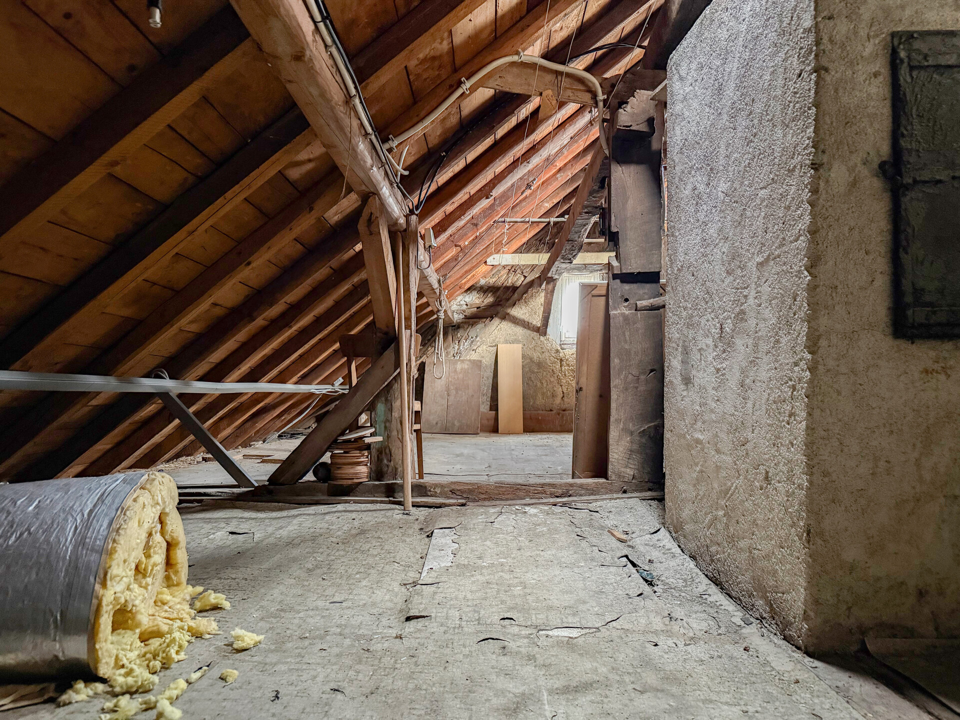 Dieses Angebot umfasst ein Wohnhaus aus ca. 1900 sowie ein ehem. Nebengebäude, das um 1970 zu Wohnraum umgebaut wurde. Beide Gebäude stehen auf einem ca. 382 m² großen Grundstück und könne wieder verbunden werden, wodurch flexible Möglichkeiten entstehen. Der linke, ältere Teil erstreckt sich über 2 Etagen. Im EG befinden sich der Eingangsbereich mit ehemaligen Küchenanschlüssen, ein Wohnzimmer, ein Hauswirtschaftsraum sowie das frühere Bad. Über eine Luke im Eingangsbereich ist ein Erdkellerraum zugänglich. Im OG liegen ein Durchgangszimmer und ein Schlafzimmer, der Dachboden ist über eine Treppe erreichbar. Die Deckenhöhen sind überwiegend niedrig (ca. 1,91–2,06 m, Balken noch niedriger). Eine frühere Verbindung zum zweiten Haustrakt im OG wurde verschlossen, kann jedoch wieder geöffnet werden. Der rechte, jüngere Gebäudeteil verfügt ebenfalls über 2 Etagen. Im EG befinden sich ein Duschbad und die Küche. Das OG bietet ein großes Wohnzimmer, ein Schlafzimmer mit Anschlussmöglichkeit zum Altbau sowie ein Kinderzimmer mit Balkon. Der Dachboden dient als Stauraum. Ein Kellerraum wird als Werkstatt genutzt. Im hinteren Grundstücksbereich befindet sich ein Garten mit Gastank zur Beheizung des neueren Hausteils, der derzeit nur über den Außenbereich erreichbar ist.
