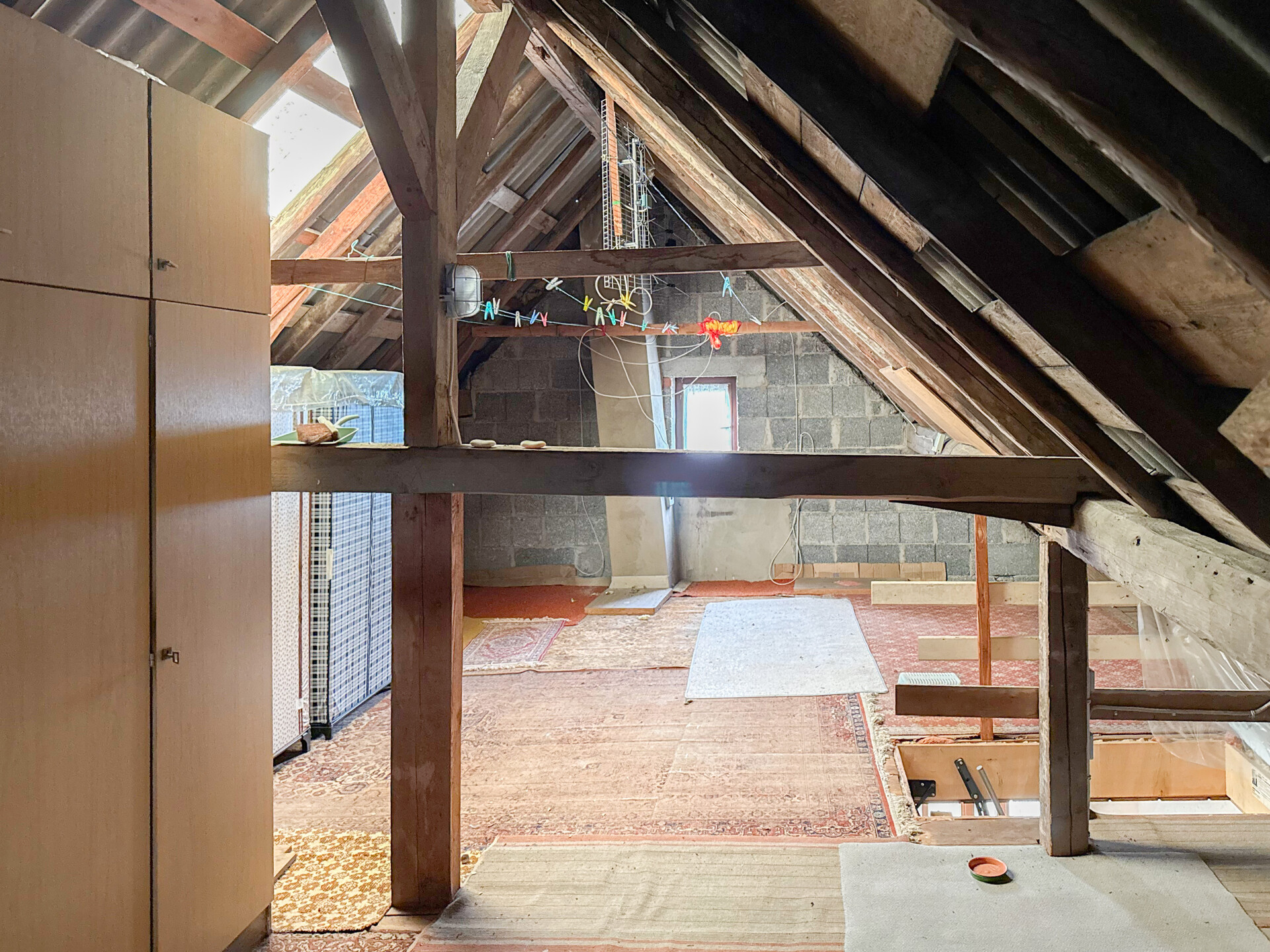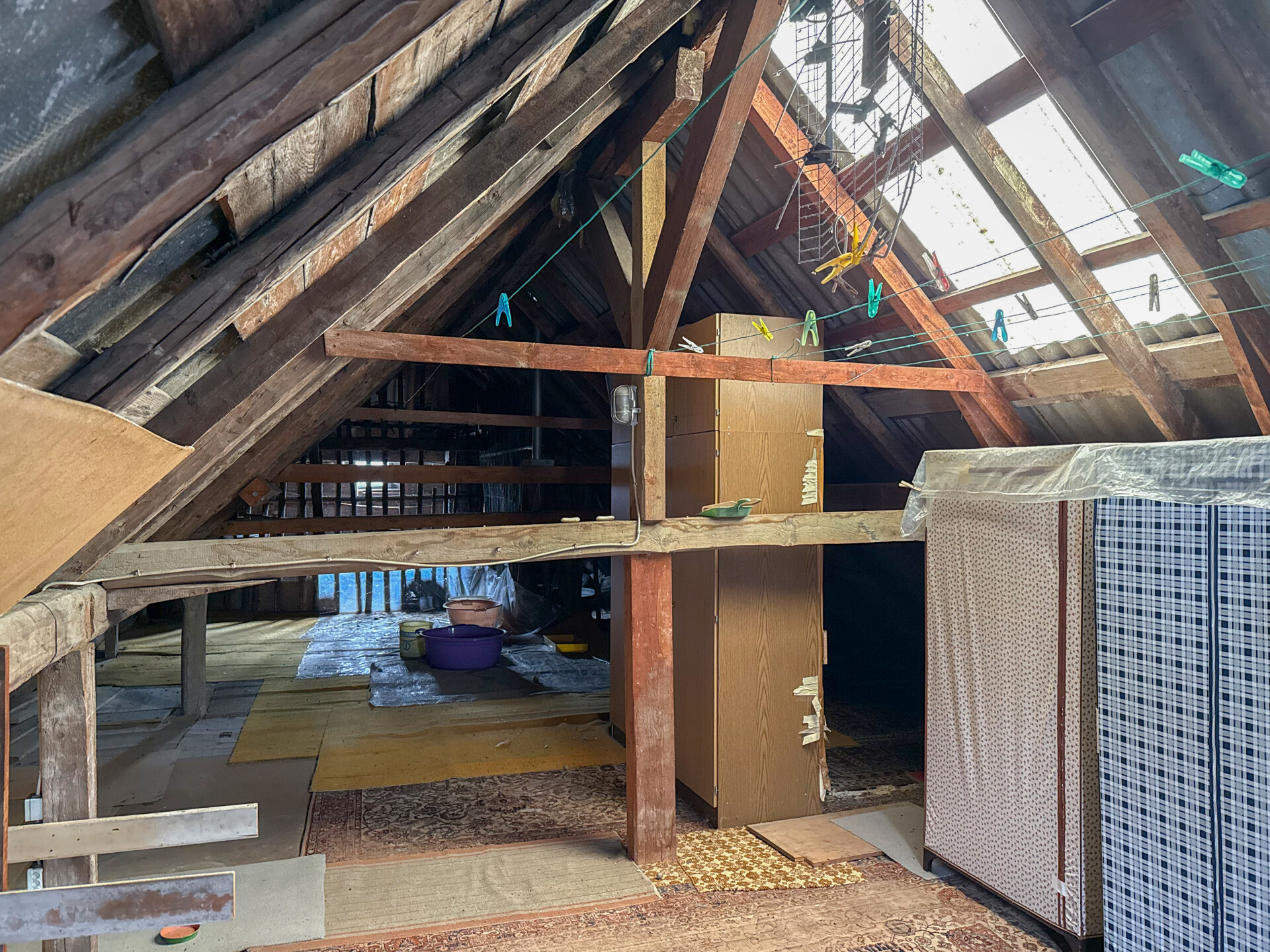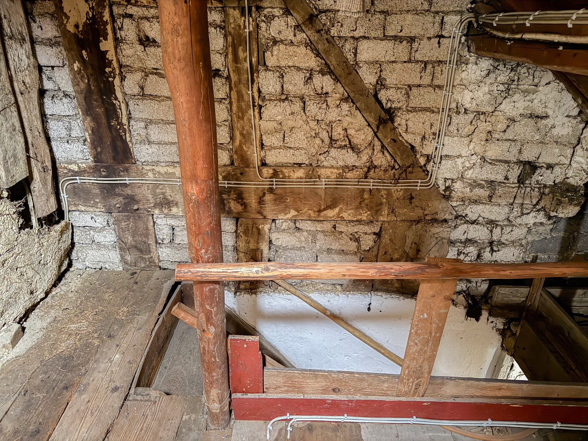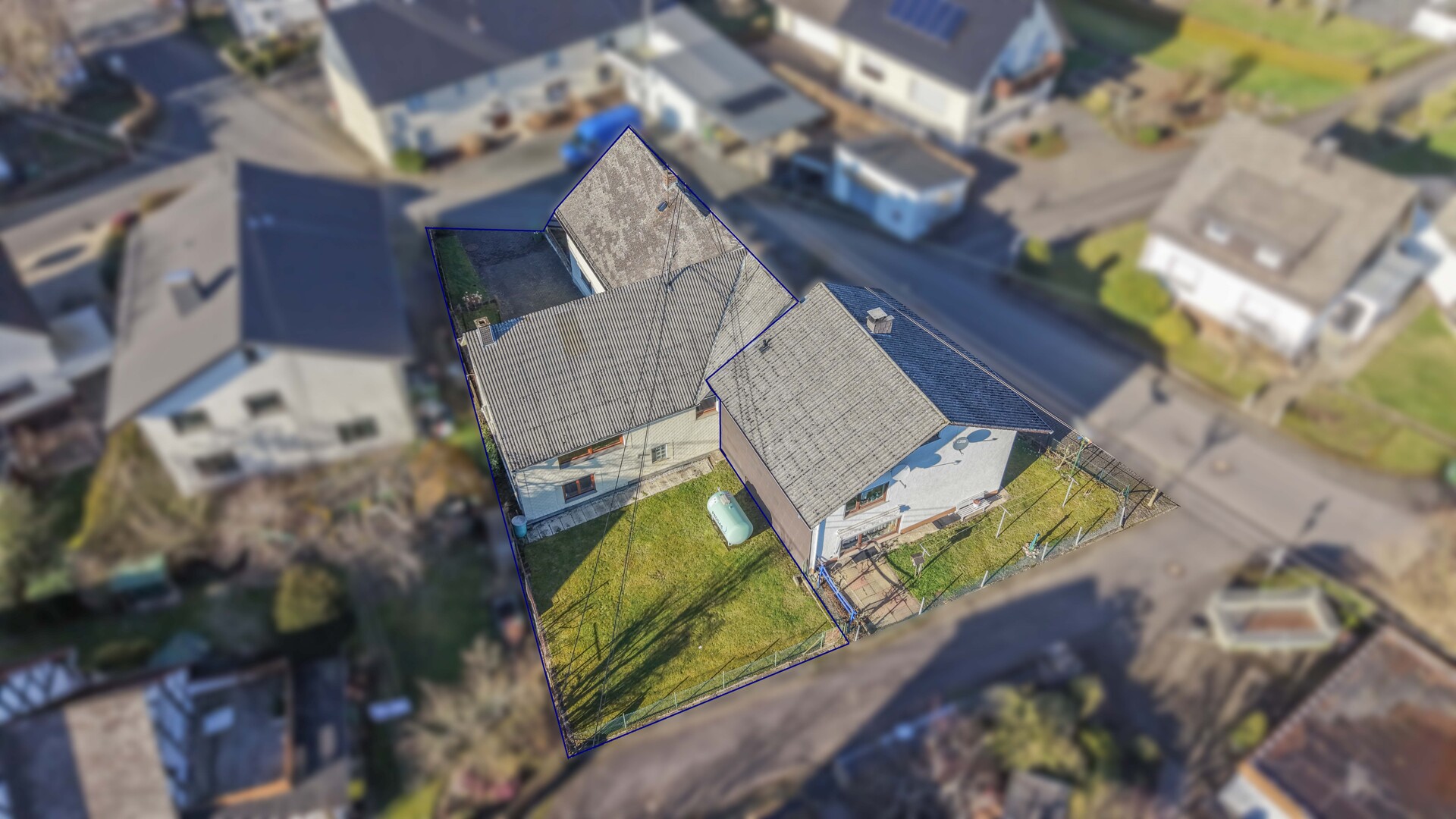 Dieses Angebot umfasst ein Wohnhaus aus ca. 1900 sowie ein ehem. Nebengebäude, das um 1970 zu Wohnraum umgebaut wurde. Beide Gebäude stehen auf einem ca. 382 m² großen Grundstück und könne wieder verbunden werden, wodurch flexible Möglichkeiten entstehen. Der linke, ältere Teil erstreckt sich über 2 Etagen. Im EG befinden sich der Eingangsbereich mit ehemaligen Küchenanschlüssen, ein Wohnzimmer, ein Hauswirtschaftsraum sowie das frühere Bad. Über eine Luke im Eingangsbereich ist ein Erdkellerraum zugänglich. Im OG liegen ein Durchgangszimmer und ein Schlafzimmer, der Dachboden ist über eine Treppe erreichbar. Die Deckenhöhen sind überwiegend niedrig (ca. 1,91–2,06 m, Balken noch niedriger). Eine frühere Verbindung zum zweiten Haustrakt im OG wurde verschlossen, kann jedoch wieder geöffnet werden. Der rechte, jüngere Gebäudeteil verfügt ebenfalls über 2 Etagen. Im EG befinden sich ein Duschbad und die Küche. Das OG bietet ein großes Wohnzimmer, ein Schlafzimmer mit Anschlussmöglichkeit zum Altbau sowie ein Kinderzimmer mit Balkon. Der Dachboden dient als Stauraum. Ein Kellerraum wird als Werkstatt genutzt. Im hinteren Grundstücksbereich befindet sich ein Garten mit Gastank zur Beheizung des neueren Hausteils, der derzeit nur über den Außenbereich erreichbar ist.