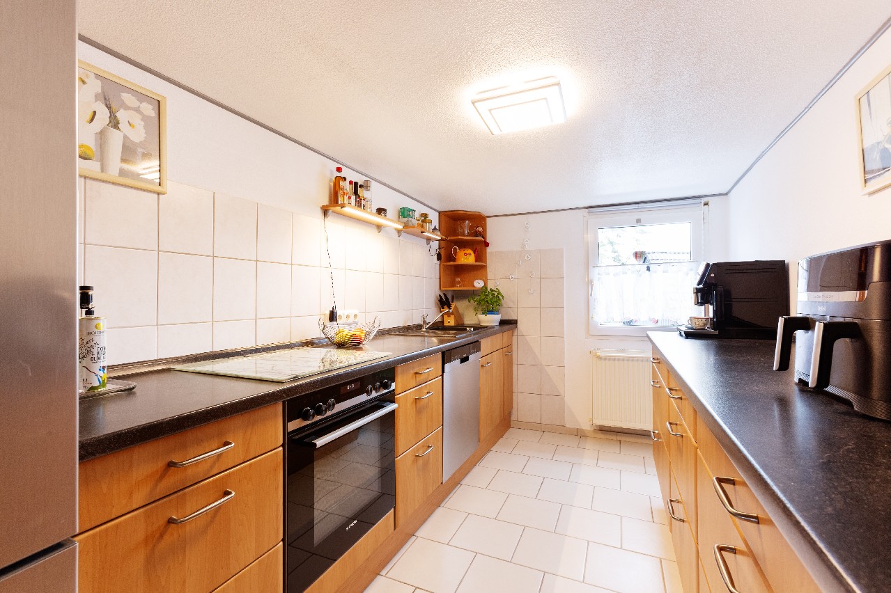 Besonders reizvoll sind die zwei Terrassen, die zu unterschiedlichen Tageszeiten Sonne und Rückzug bieten perfekt für den ersten Kaffee am Morgen oder ein Glas Wein in der Abendsonne. Ein PKW-Stellplatz direkt am Haus sorgt für zusätzlichen Komfort im Alltag.
