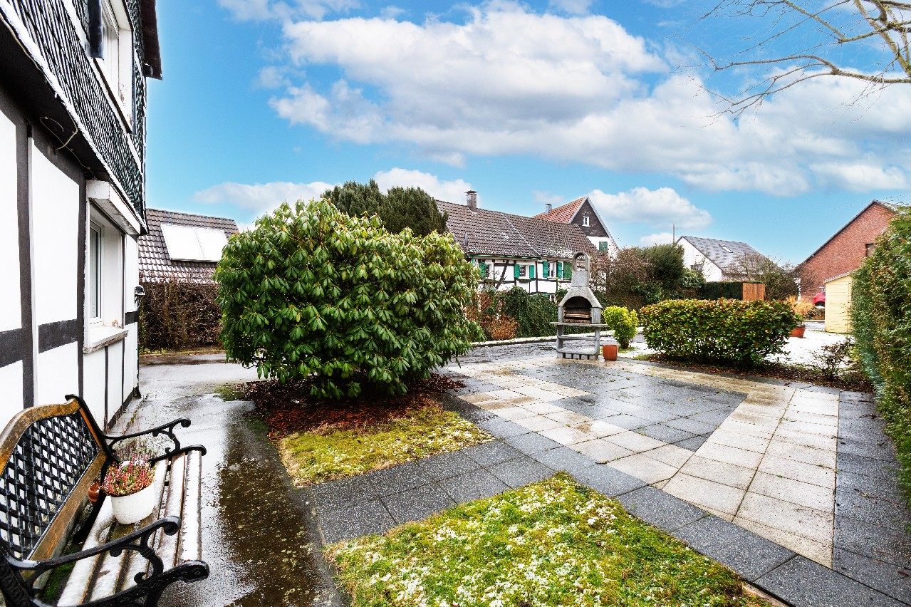 Das charakteristische Fachwerk wurde teilweise ausgemauert. Diese Maßnahme verbindet den unverwechselbaren Charme der historischen Bauweise mit einer soliden, wertigen Substanz. Das typische Erscheinungsbild des Hauses bleibt erhalten und wird gleichzeitig konstruktiv sinnvoll ergänzt.
