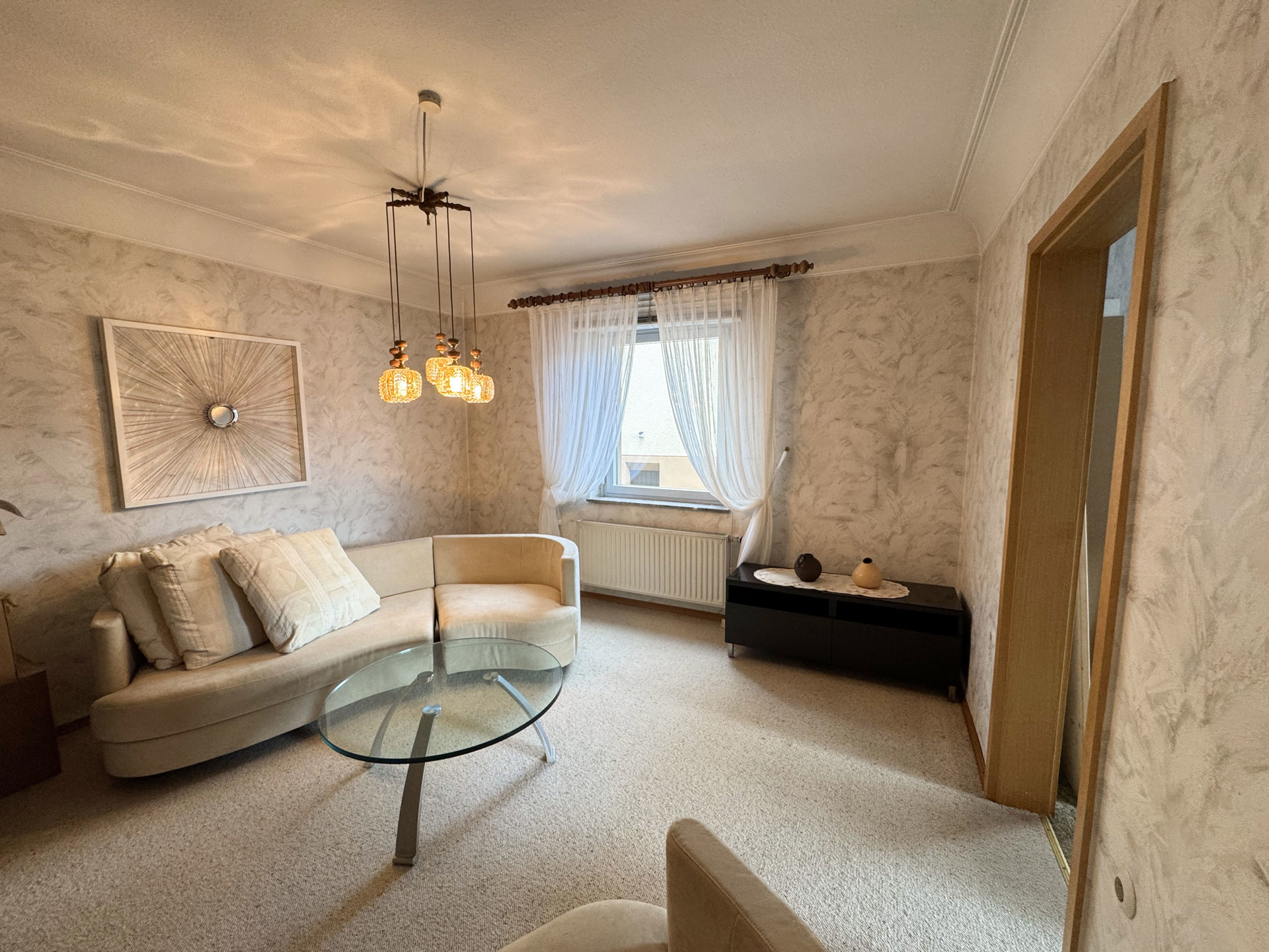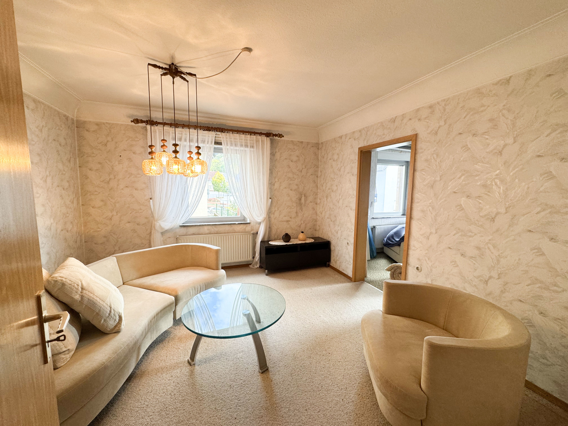 Entdecken Sie dieses solide Einfamilienhaus zum Kauf in Dornburg. Das zweigeschossige, unterkellerte Haus bietet eine Wohnfläche von ca. 115 m² und verfügt über insgesamt fünf Zimmer, darunter ein großes Wohnzimmer, drei geräumige Schlafzimmer und ein zusätzliches Zimmer, das flexibel genutzt werden kann, sowie ein Badezimmer mit Wanne und Dusche und ein separates WC.
