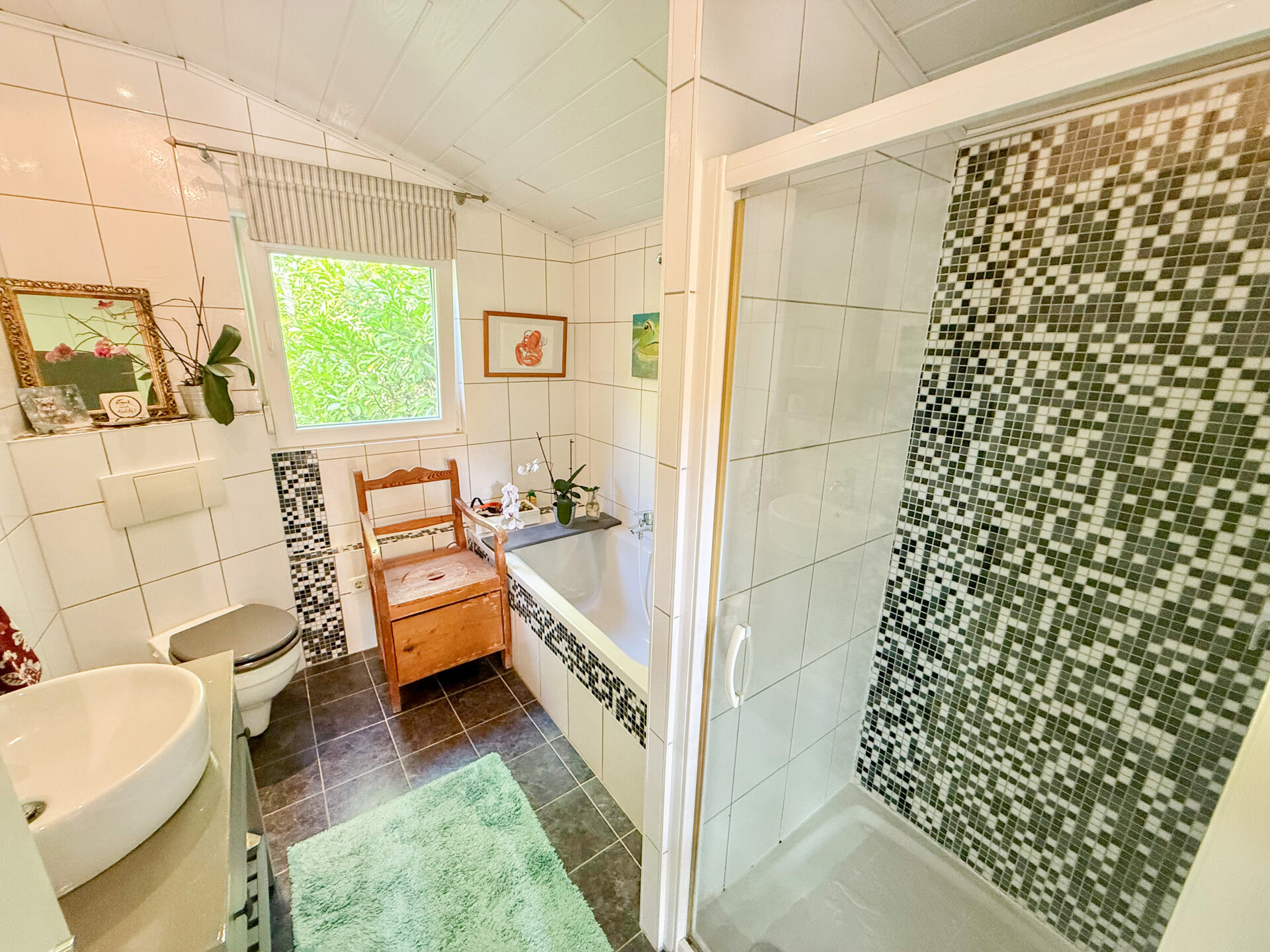 • Badausstattung: Dusche, Badewanne