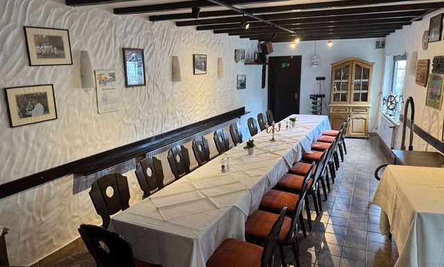 Darüber hinaus verfügt das Objekt über mehrere Veranstaltungsräume unterschiedlicher Größen, die flexibel für Geburtstage, Versammlungen, Firmenfeiern oder als Beerdigungscafé genutzt werden können. Diese Vielseitigkeit macht das Haus zu einem etablierten Anlaufpunkt für unterschiedlichste Anlässe. Für Gäste und Besucher stehen ausreichend Parkplätze zur Verfügung, darunter insgesamt 16 Stellplätze hinter dem Haus.