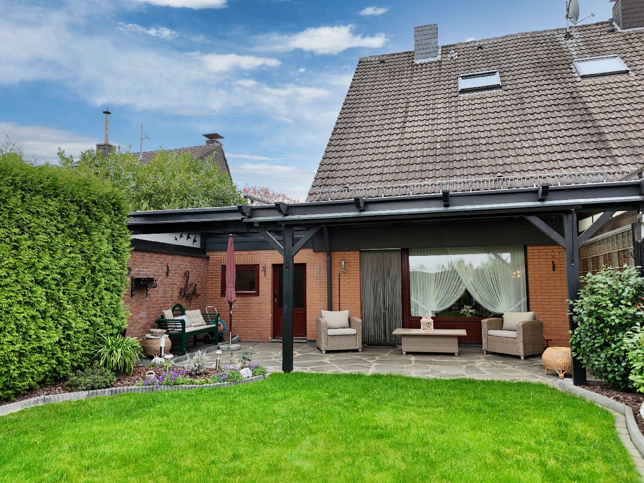 gr. tlw. überdachte Terrasse und schöner Garten