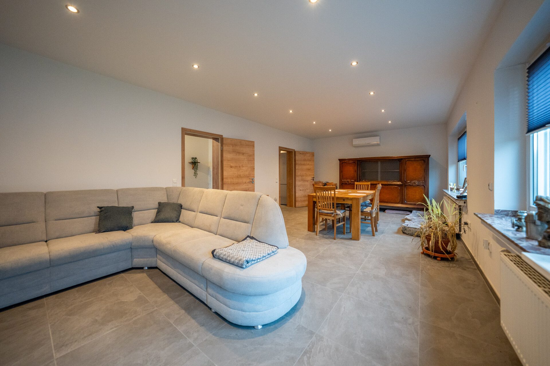 Helle, lichtdurchflutete Räume verleihen dem Haus eine offene und freundliche Atmosphäre, die sofort ein Gefühl von Geborgenheit und Wohlbefinden vermittelt. Der Wohnbereich öffnet sich direkt zur Terrasse und zum weitläufigen Garten – ein Ort, an dem Entspannung, Spiel und geselliges Beisammensein gleichermaßen möglich sind.