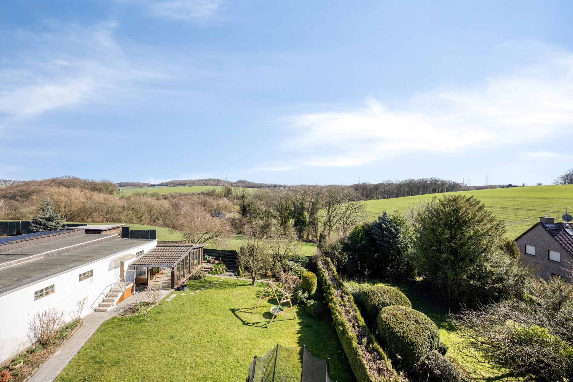 Auch die Anbindung an die umliegenden Städte ist sehr gut. Über die nahegelegenen Verkehrsachsen erreichen Sie Düsseldorf, Wuppertal, Essen und das gesamte Ruhrgebiet in kurzer Zeit. Damit verbindet die Lage ruhiges Wohnen im Grünen mit einer guten regionalen Erreichbarkeit.