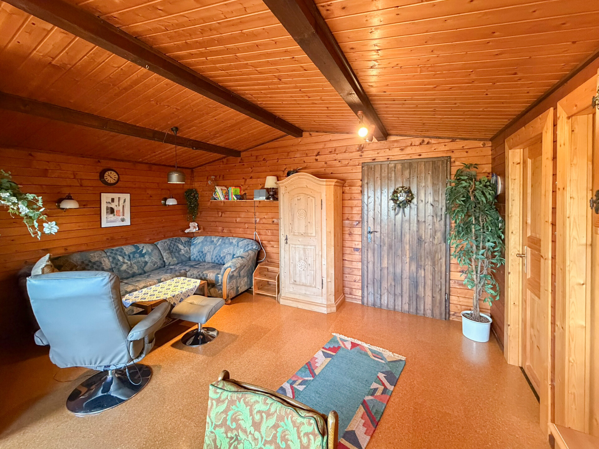 Auf dem Grundstück befindet sich derzeit ein Ferienhaus aus dem Jahr 1979 mit einer Wohnfläche von ca. 60 m². Das Haus verfügt über zwei Schlafzimmer sowie einen Wohn-/Essbereich. Weiter ist das Objekt mit einer Einbauküche sowie einer Sauna und einem Tauchbecken ausgestattet. Die Versorgung des Ferienhauses erfolgt über eine Stromverbindung vom benachbarten Grundstück; eine entsprechende schriftliche Vereinbarung liegt vor. Der Anschluss an das öffentliche Kanalnetz ist ebenfalls gegeben.
