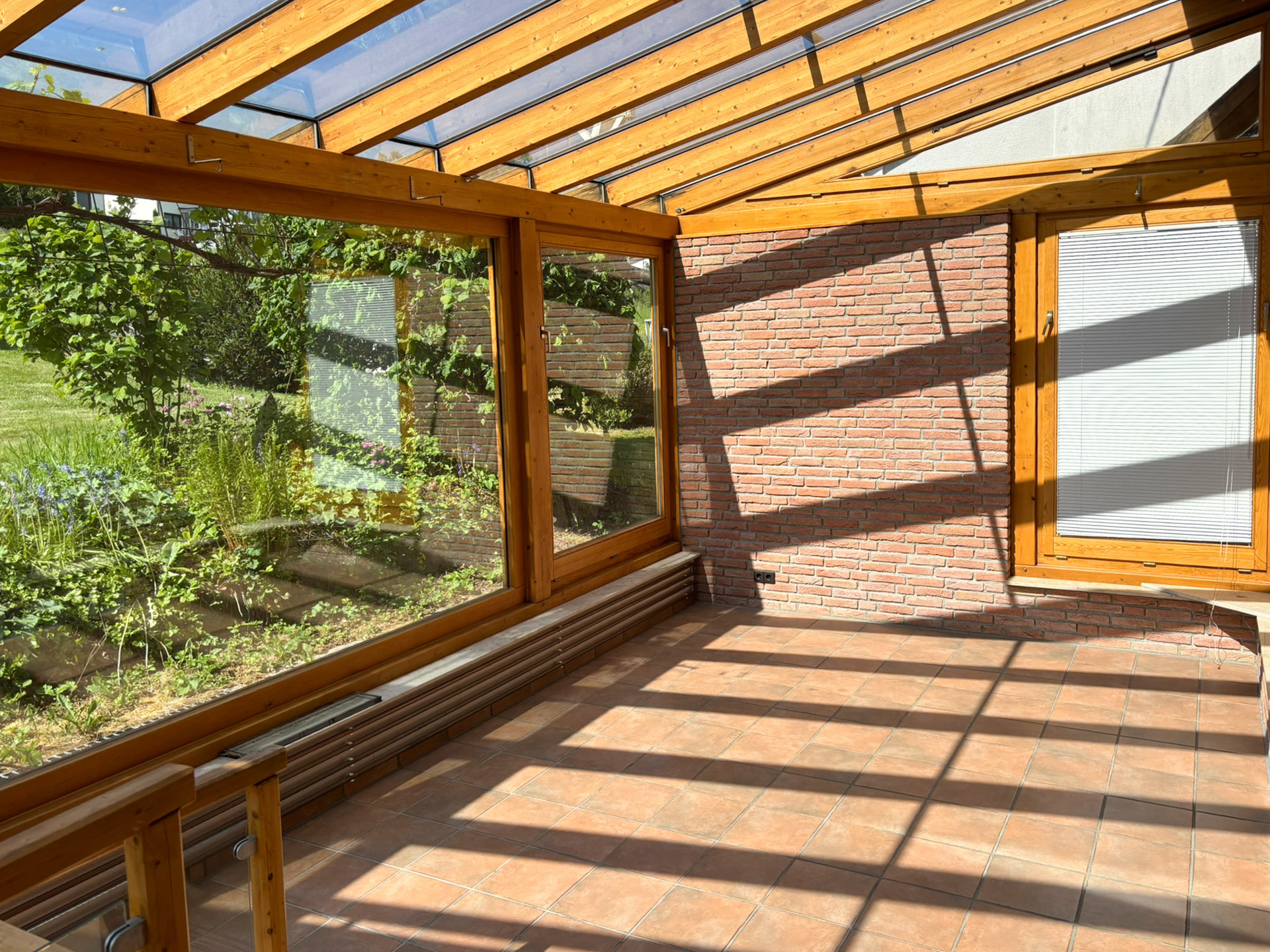 Das Haus ist in zwei Wohneinheiten unterteilt und wird über einen zentralen Eingang im Souterrain erschlossen. Die rechte Einheit überzeugt mit einem hellen Wohn- und Essbereich, Wintergarten und Blick in den Garten. Im Dachgeschoss stehen fünf Schlafzimmer sowie ein Badezimmer zur Verfügung. Die linke Einheit bietet einen großzügigen Wohnbereich mit Terrassenzugang, eine separate Küche sowie ein Schlafzimmer mit Balkon im Obergeschoss. Im Untergeschoss befinden sich neben Vorrats- und Hauswirtschaftsräumen zwei integrierte Garagen mit direktem Hauszugang. Ein Wellnessbereich mit Sauna sorgt für zusätzlichen Wohnkomfort. Das Angebot wird durch enthaltenes Bauland ergänzt.