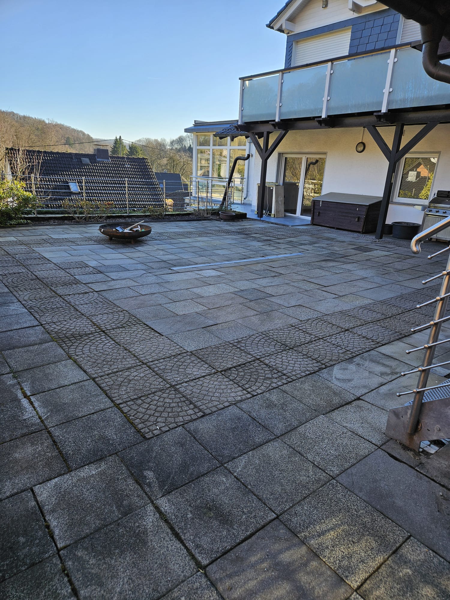 Sonnige Terrasse mit schönem Ausblick